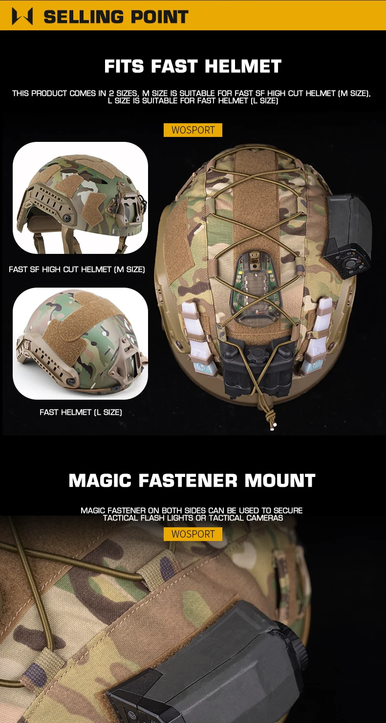 Funda para casco Cordura FAST multicolor, cierre de gancho y bucle, funda para casco de telaInformación del producto