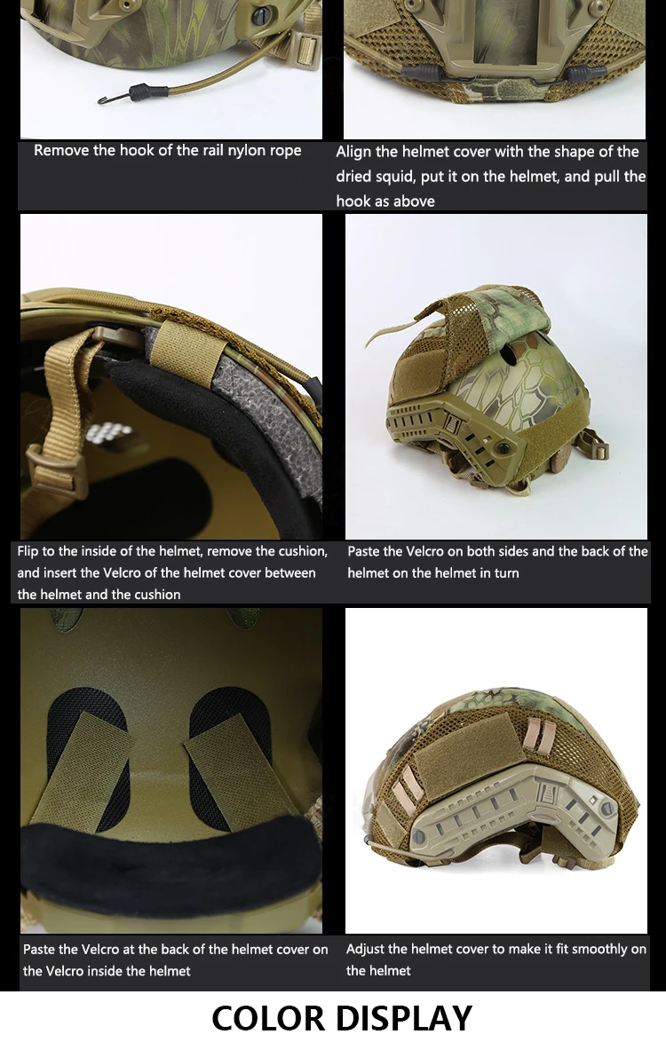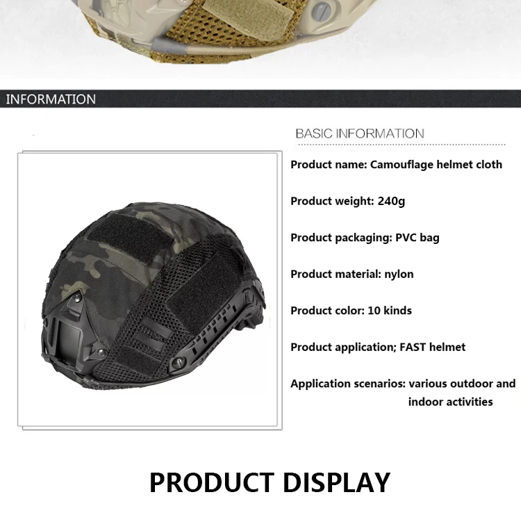 Cubierta de casco rápido de combate militar táctico, tela de casco de caza Airsoft, cubierta de casco deportivo CS Wargame para tipo Ops-Core PJ BJ MH