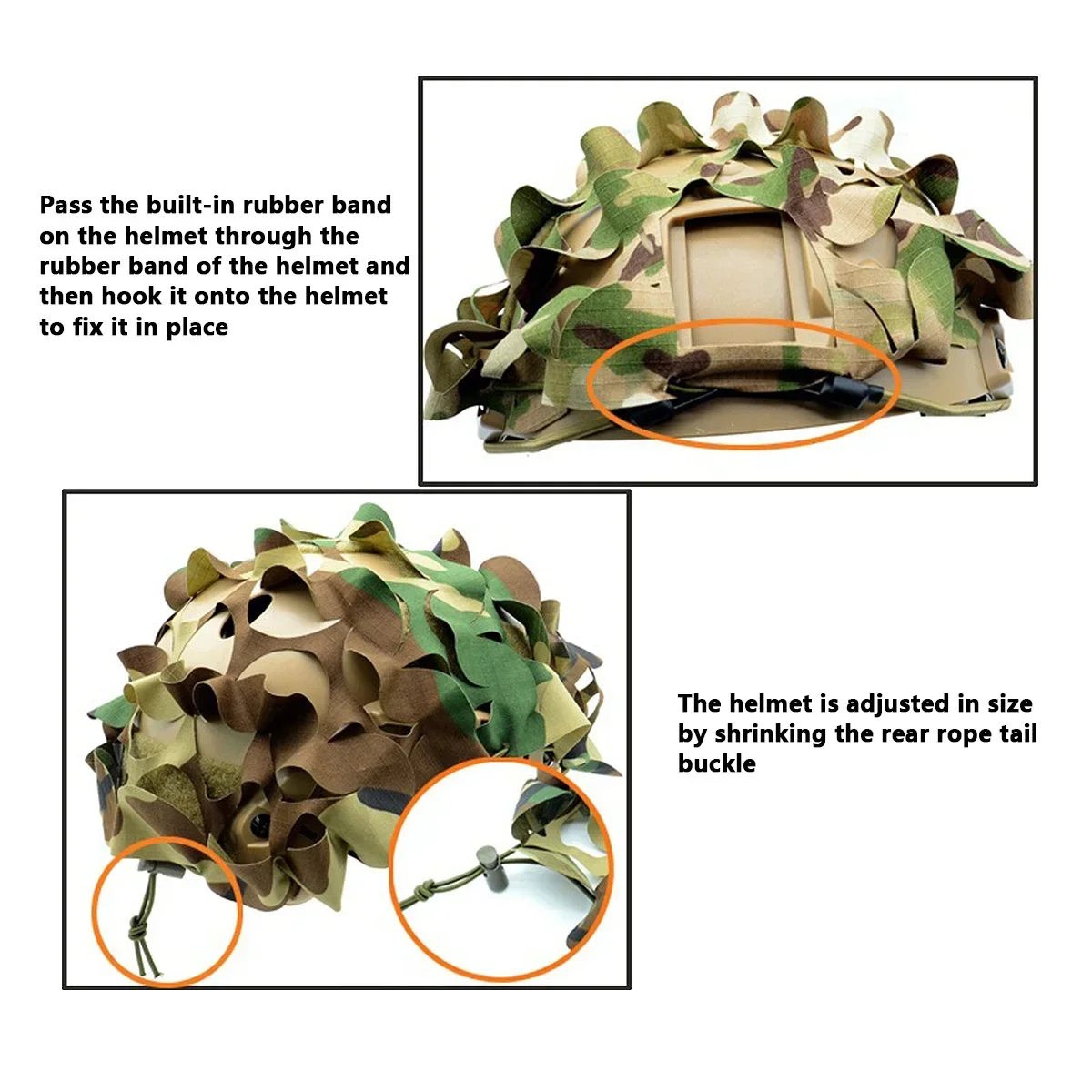 Cubierta de casco rápido de red de camuflaje 3D, cordón de nailon, paño de casco, corte láser, Airsoft, Paintball, accesorios de caza