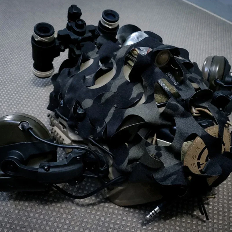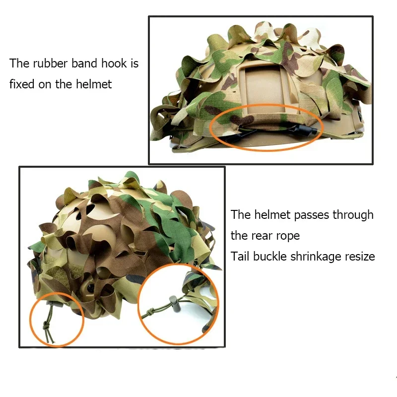 El diseño elástico se puede unir a los cascos para un camuflaje adicional.