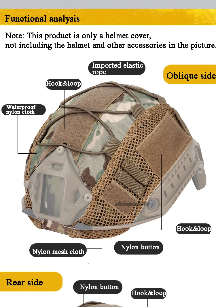 Cubierta de casco táctico Fast MH PJ BJ tipo cascos ropa de nailon