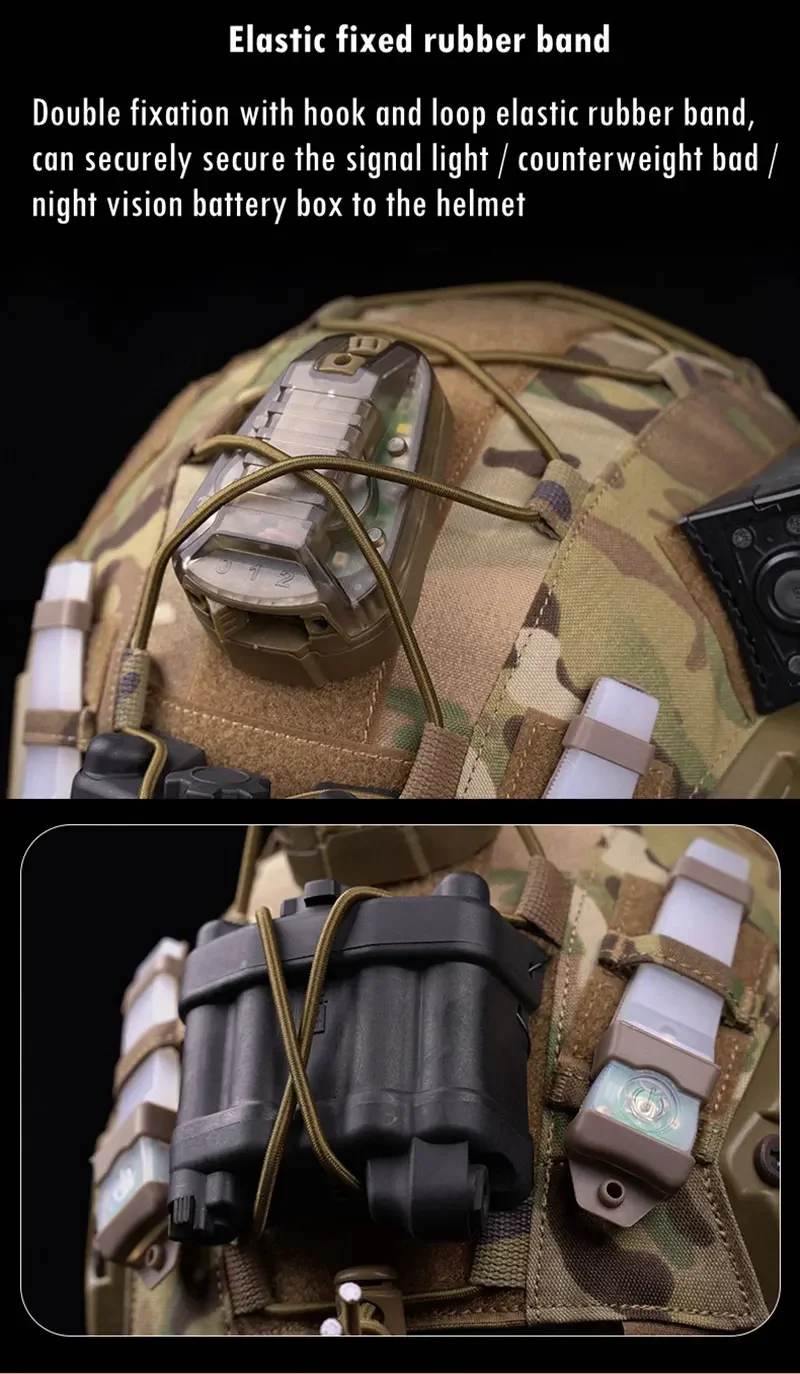 ●Doble fijación con banda elástica de goma de gancho y bucle, puede asegurar de forma segura la luz de señal/contrapeso MAL/caja de batería de visión nocturna al casco.