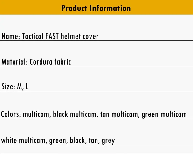 ●Colores: Multicam, Multicam negro, Multicam marrón, Multicam verde, Multicam blanco, verde, negro, marrón, gris.