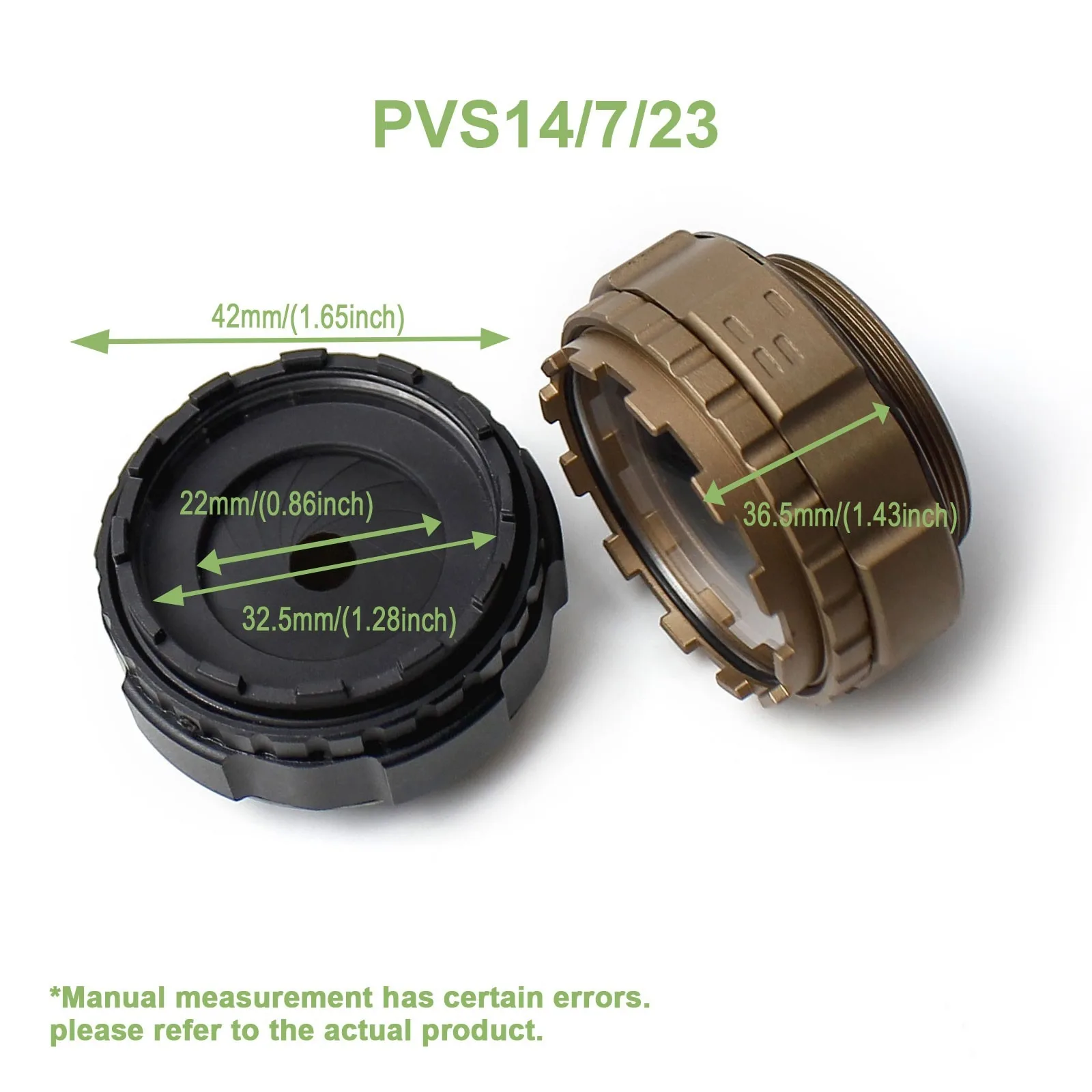 El soporte para lentes sacrificales puede aceptar accesorios de posventa para lentes estilo pvs-14, como lentes LIF o de sacrificio con un diámetro exterior que no exceda los 32,4 mm.