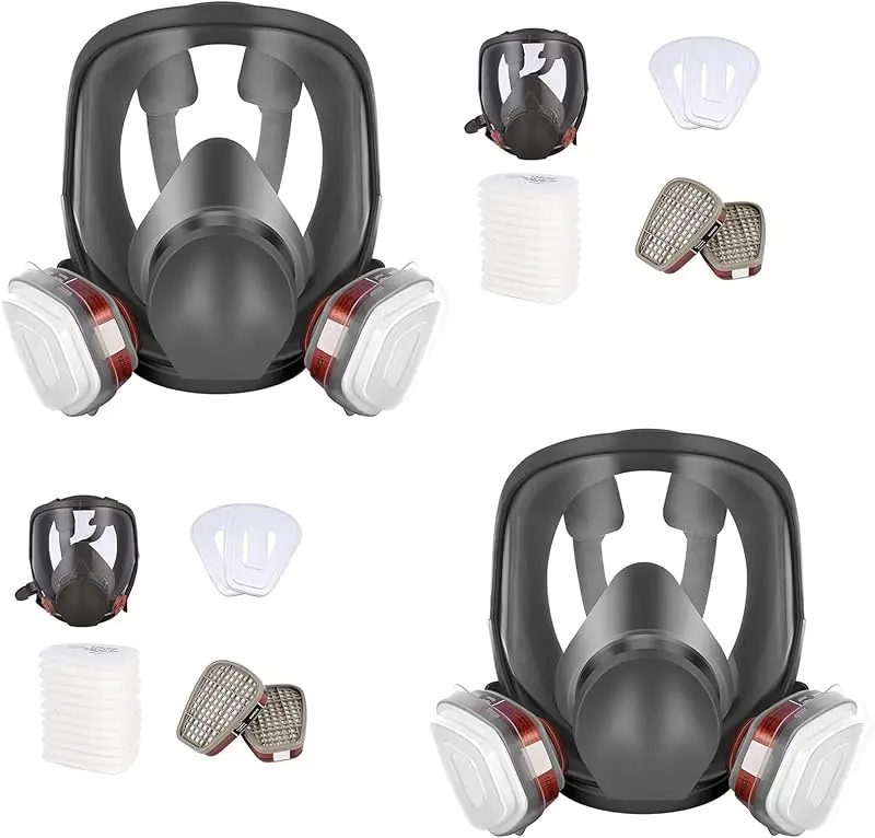 【Doble protección】 La máscara facial completa profesional adopta un sistema de doble filtro, que puede bloquear eficazmente el 99% de vapor/gas orgánico, humo, polen, polvo y otras partículas en el aire. Es el dispositivo de protección ideal en su trabajo