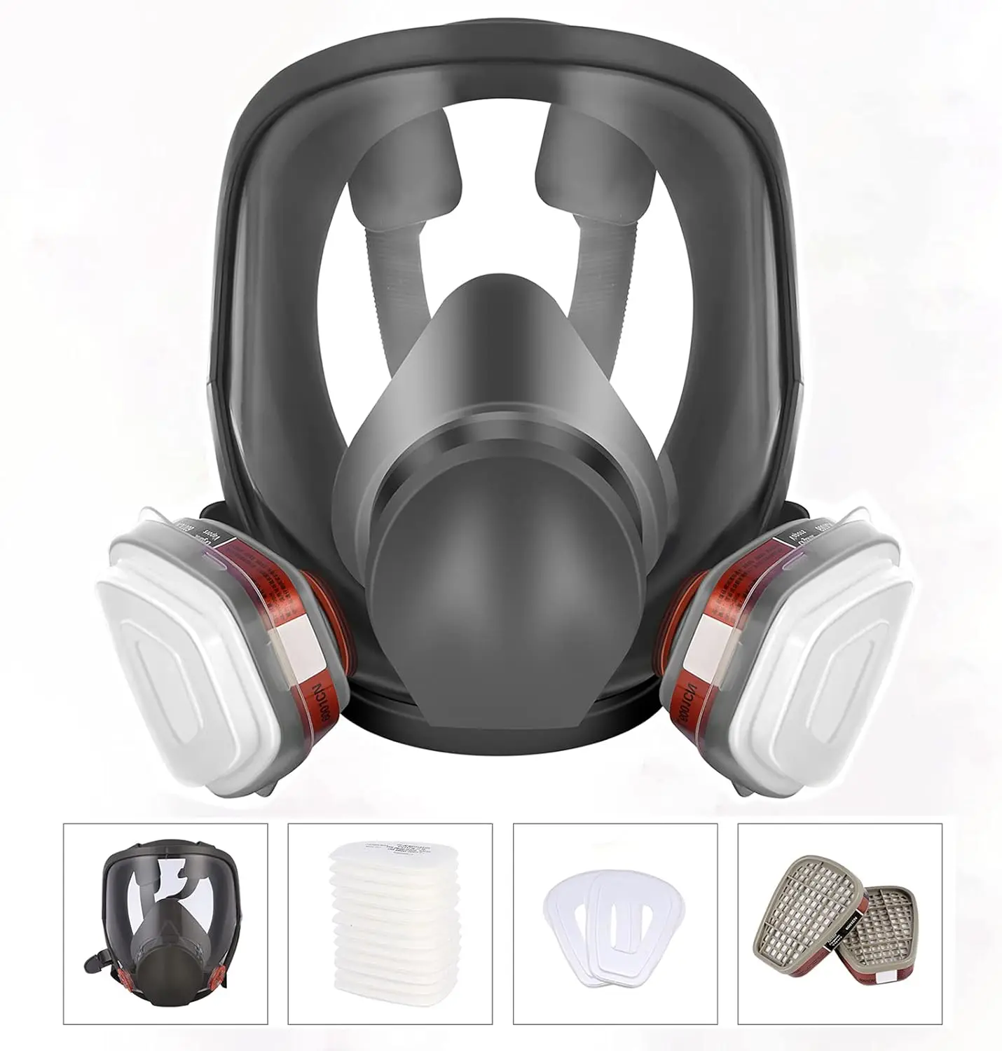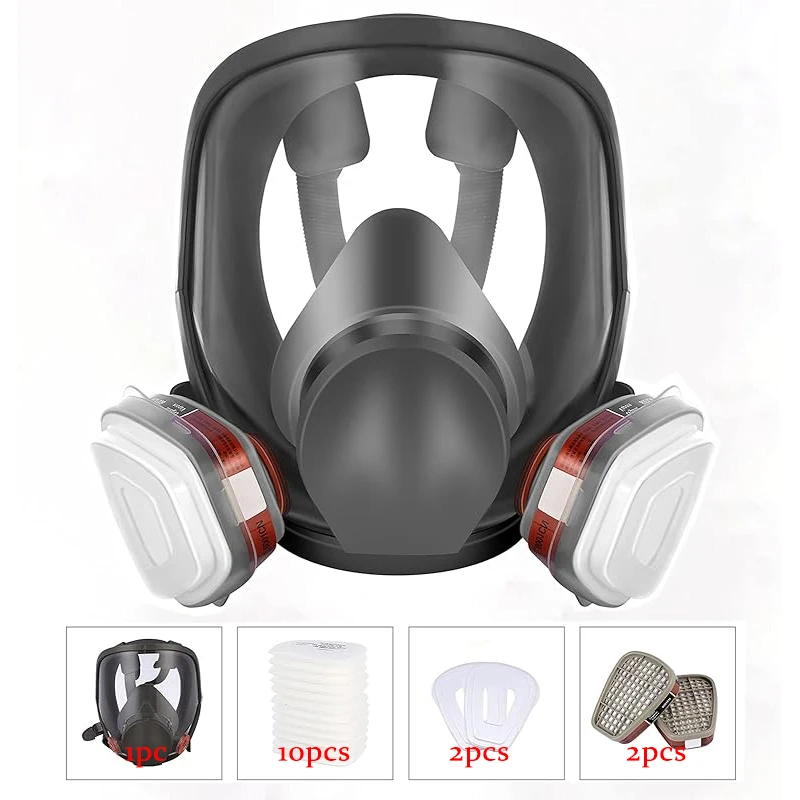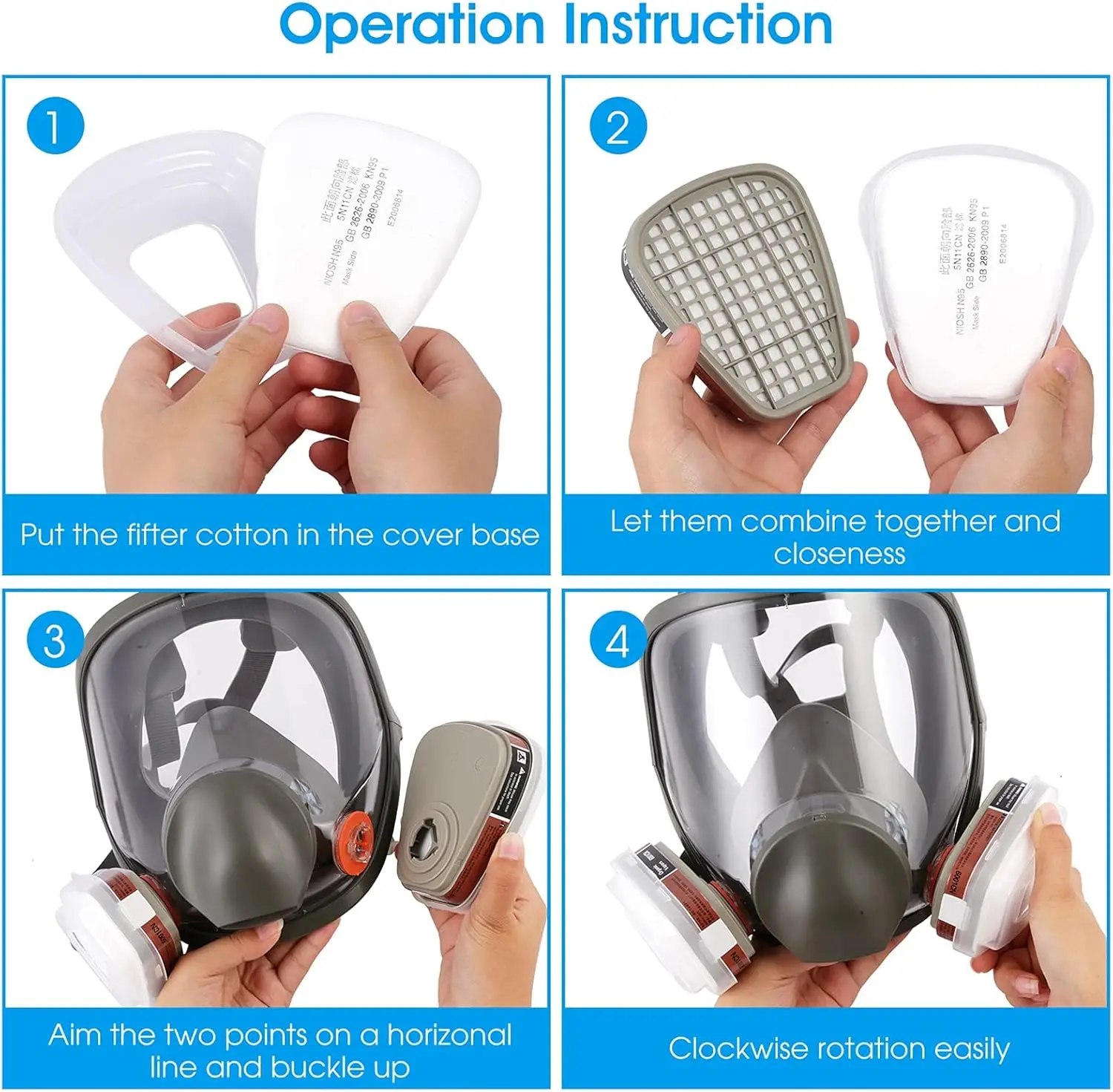 Amplia aplicación: la mascarilla facial completa puede bloquear una variedad de sustancias nocivas, así como el área de trabajo de productos químicos, vidrio, metales, pinturas, agricultura, formaldehído y otros vapores/gas irritantes.En trabajos mecánicos, como soldadura, aserrado, esmerilado, graffiti, etc., puede evitar que entren partículas de polvo