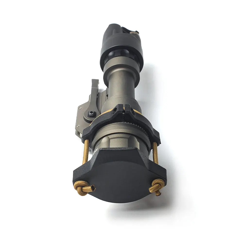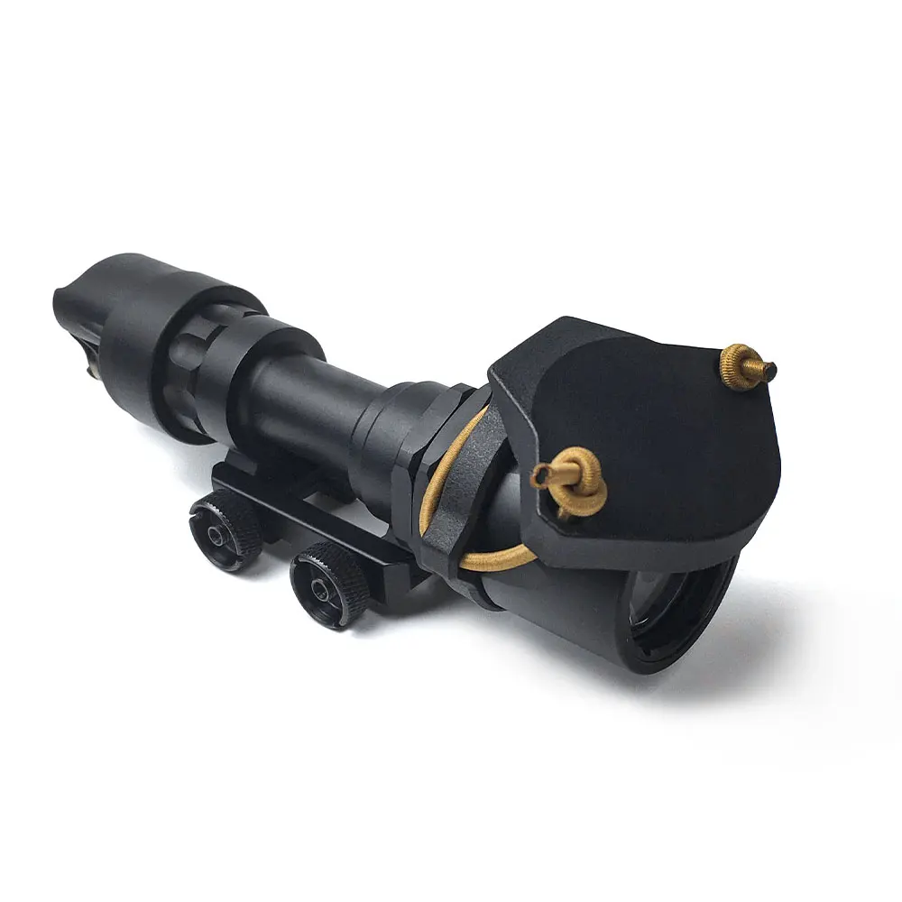 La tapa de luz también actúa como una seguridad contra descargas de luz negligentes que revelarían la posición del usuario. Esto es especialmente importante si se ejecuta visión nocturna y láser IR/iluminadores donde una descarga de luz blanca no planificada podría ser catastrófica.
