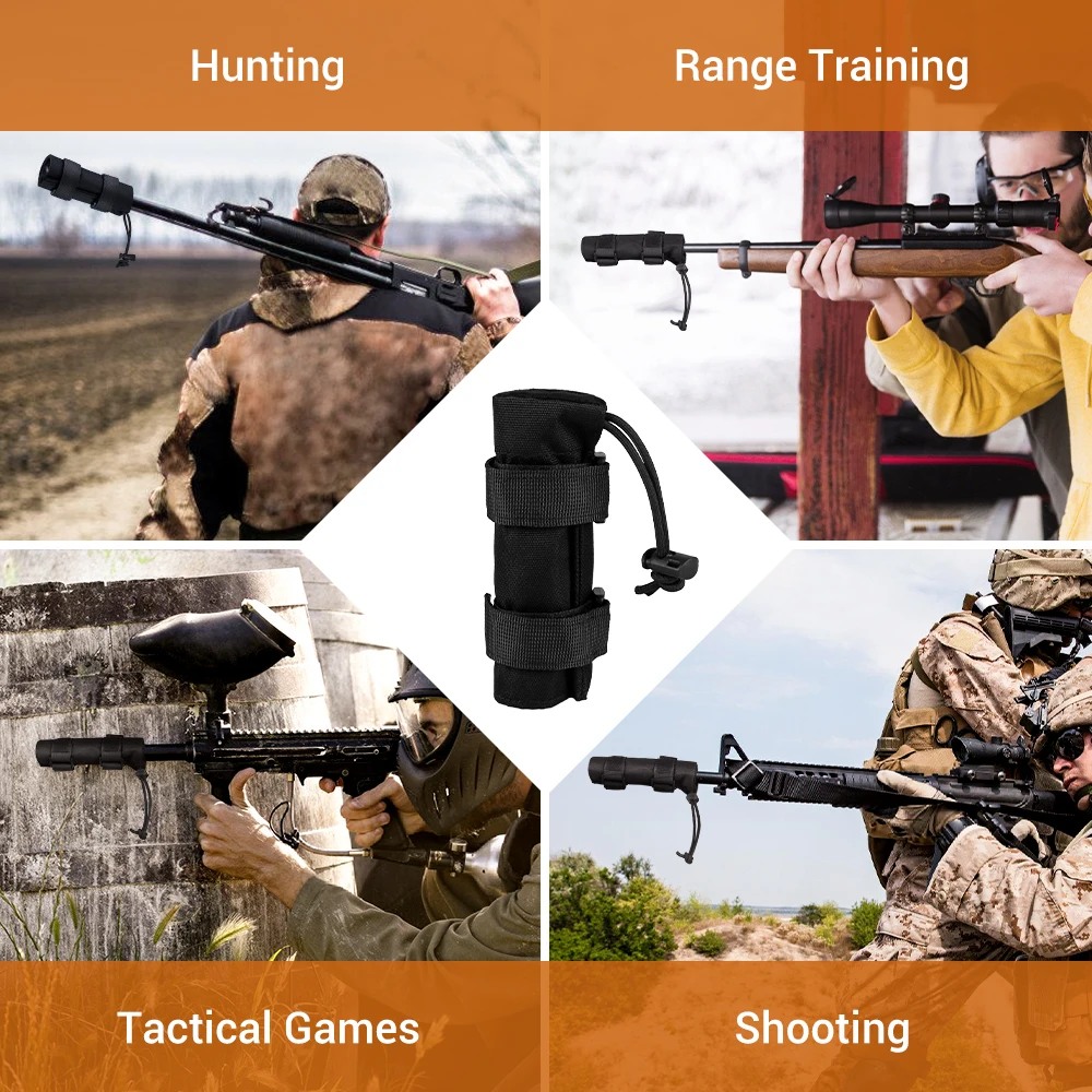 Las líneas rectas son más llamativas que las líneas curvas y los objetos de forma natural, por lo que esta cubierta resistente al calor rompe la silueta/forma del rifle, mejor para ocultar la ubicación del tirador.También elimina el destello del boca causado por el metal reflectante y la pintura descascarada.