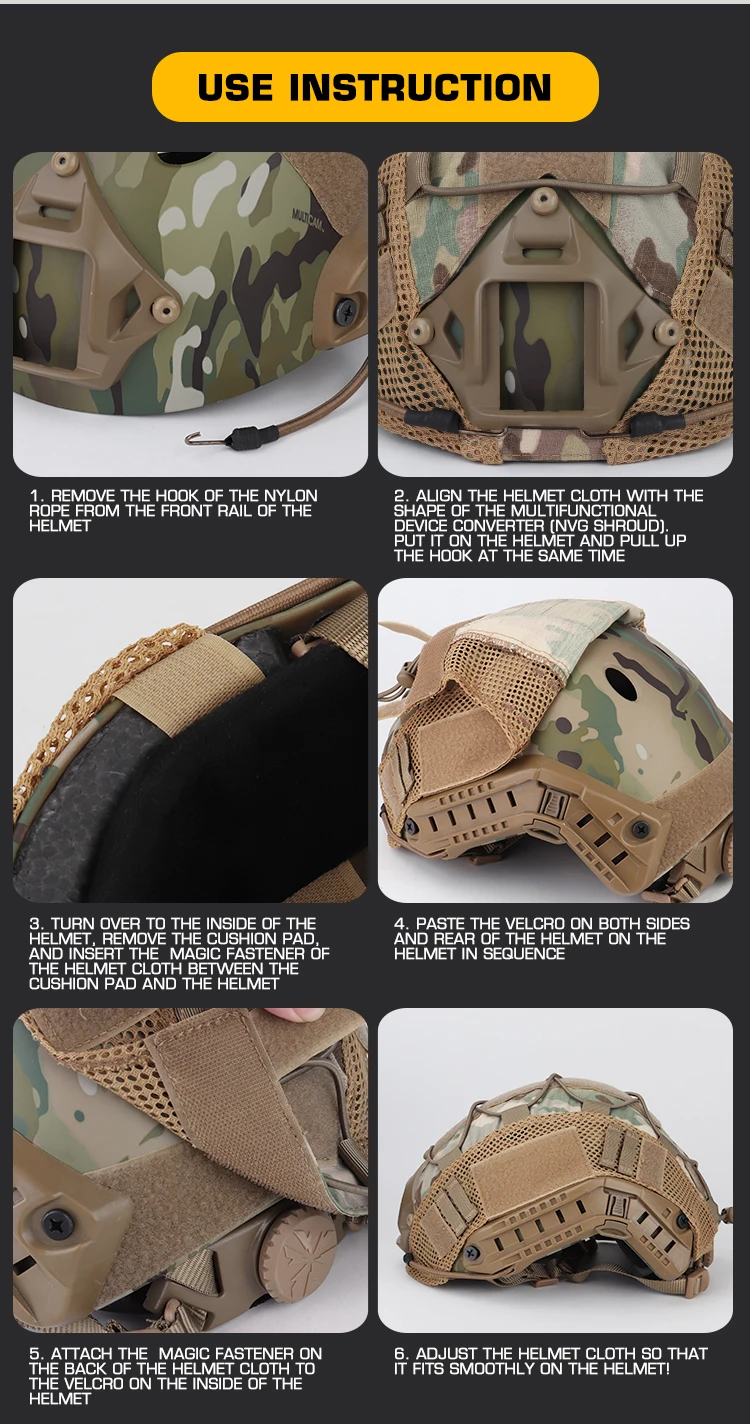 Cubierta de tela para casco rápido con cordón elástico Accesorios para casco rápido