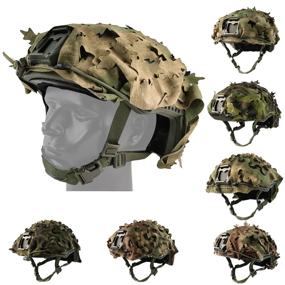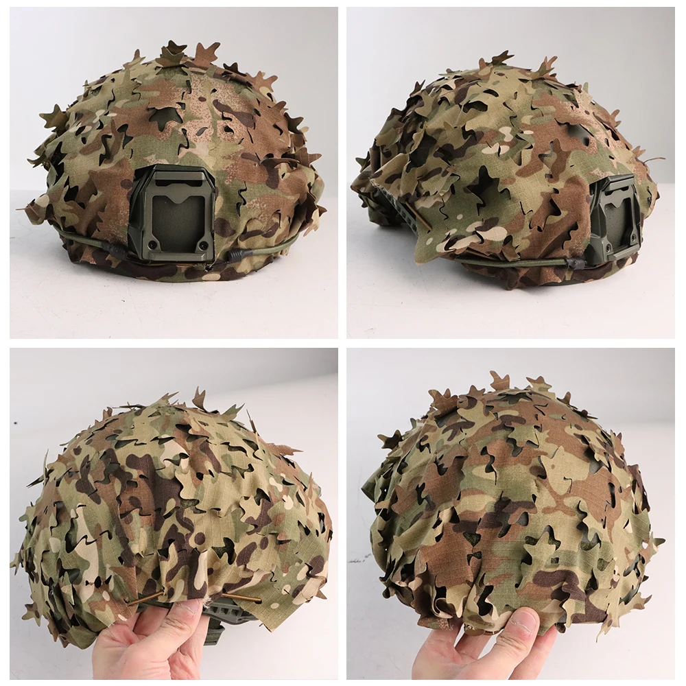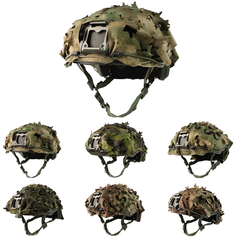 Funda para casco con corte láser 3D: la funda para casco hecha de tela ripstop Terylene/algodón puede adaptarse al tamaño M/L ops core fast PJ BJ MH, ranura frontal diseñada para nvg.