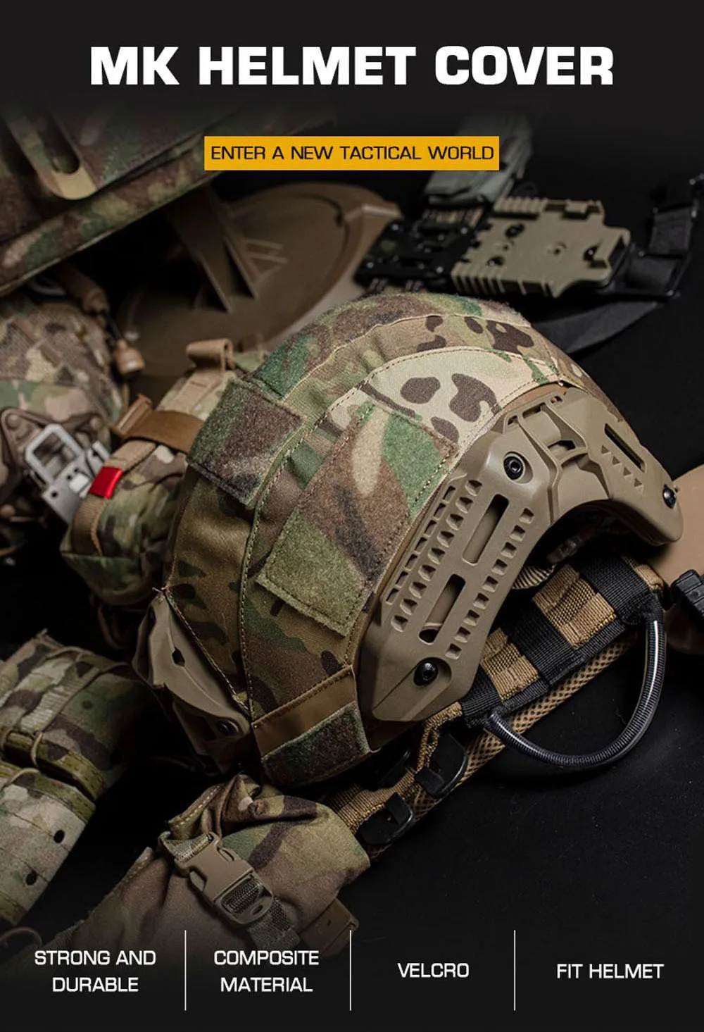 Funda táctica para casco MK, parche mágico de fijación, caza, asalto, combate, Airsoft, funda para casco al aire libre CS Wargames, tela para casco DIY