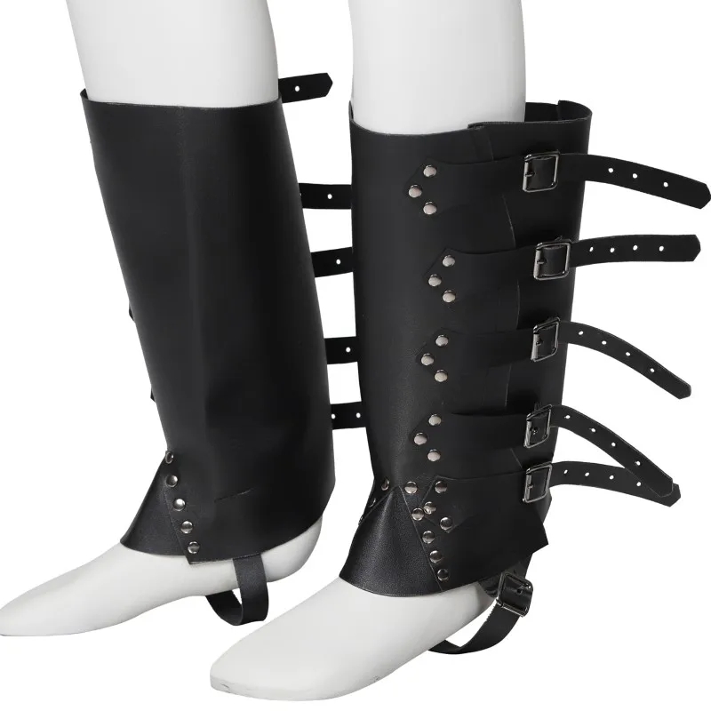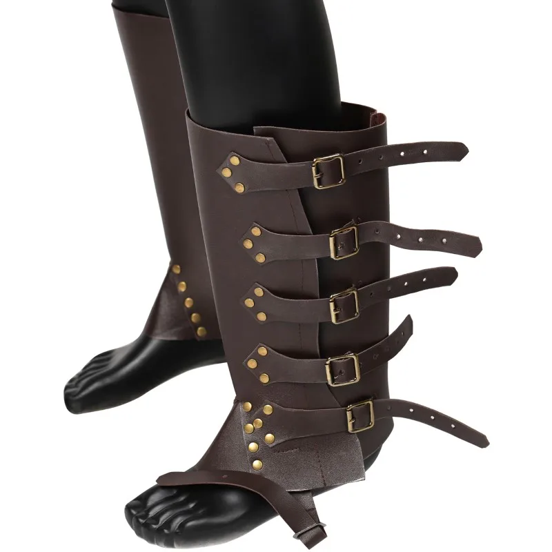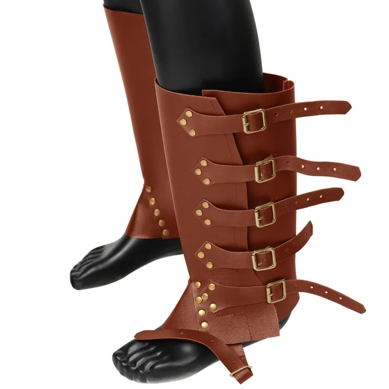 Cubiertas tácticas para zapatos, botas medievales de cuero PU, tachonadas, mallas con correas, accesorios para espectáculos de fotos