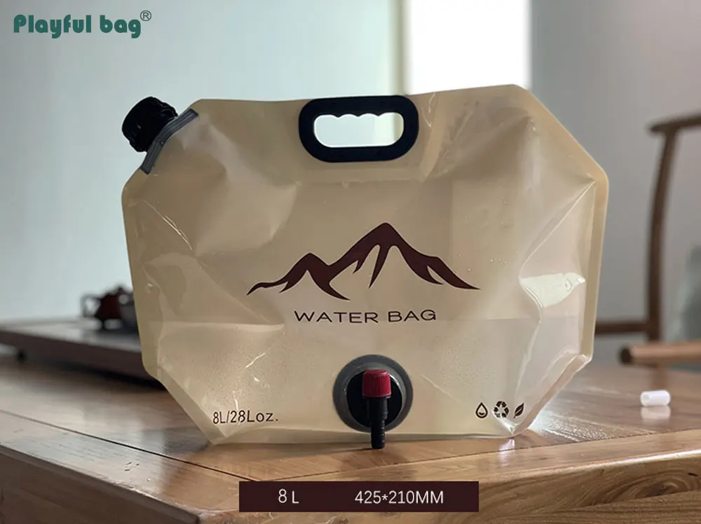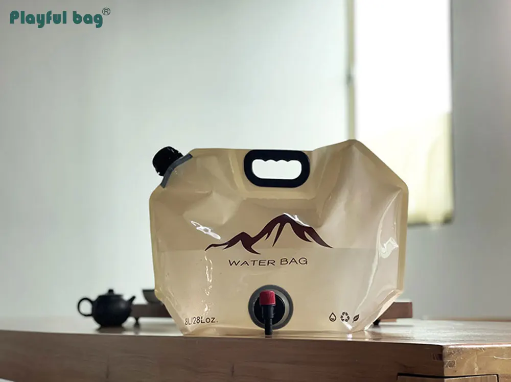 Cubo de agua para acampar con grifo, bolsa de agua de viaje plegable, paquete de plástico suave portátil para exteriores, 8L, AVA260