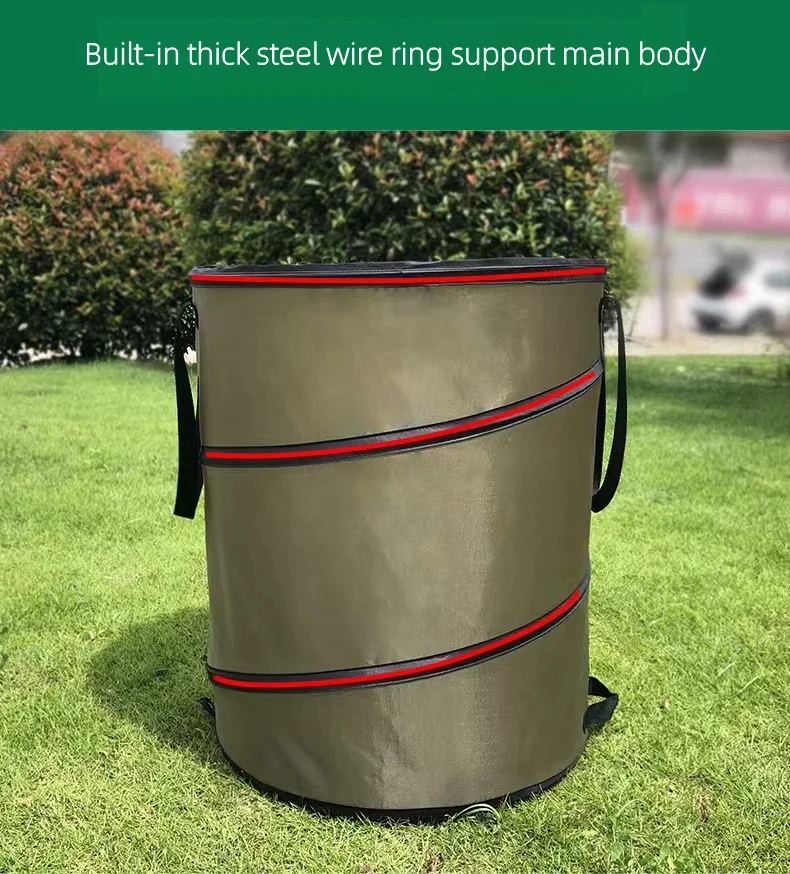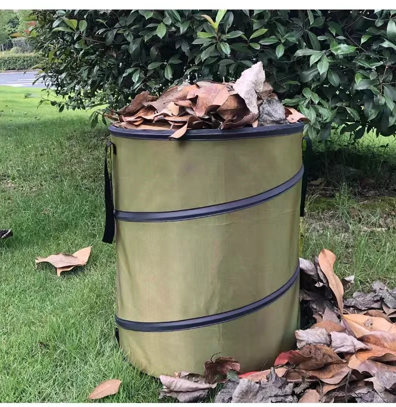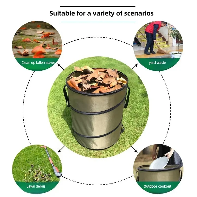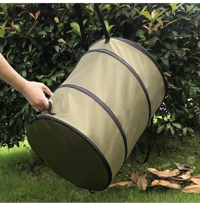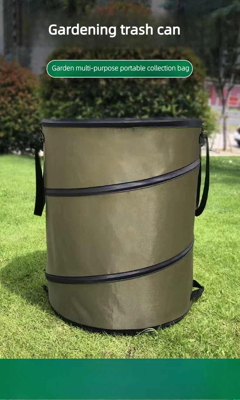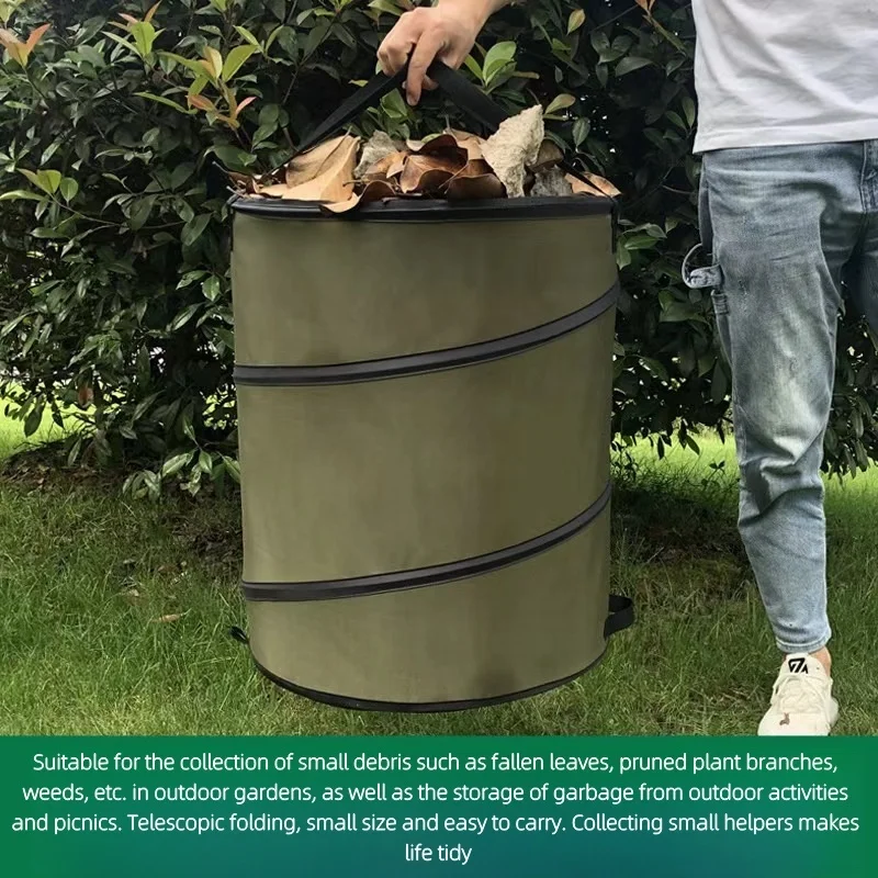 Cubo de basura plegable para jardín, papelera grande de tela Oxford con hojas, capacidad para almacenamiento de malezas al aire libre, novedad