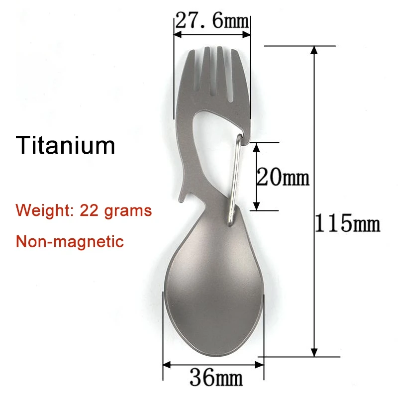 Característica:1. El titanio plegable Spork es insípido, inodoro, no tóxico y apto para lavavajillas. Su cuerpo está hecho de titanio puro de primera calidad sin revestimiento y su mango está hecho de acero inoxidable 304 de grado alimenticio. Originalmente diseñado para mochileros, campamentos y viajes, también es ideal para picnics, preparación para emergencias y alrededor del hogar, la escuela y la Oficina.