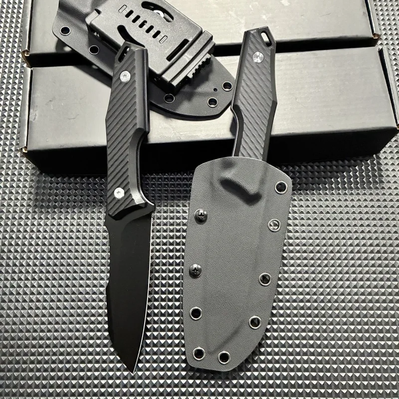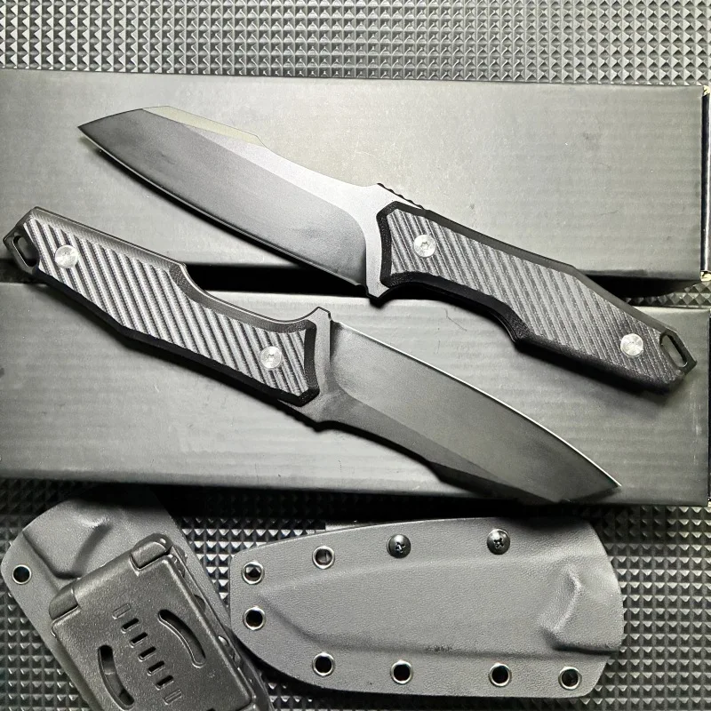 Cuchillo al aire libre, cuchillo de supervivencia en la naturaleza, cuchillo táctico multifuncional, cuchillo de autodefensa para acampar con funda K, recto b