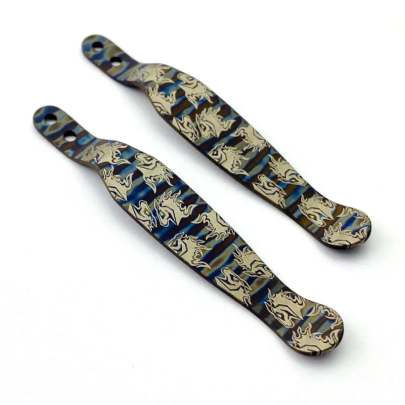 Tratamiento superficial: titanio tostado con diseño de tigre de llama