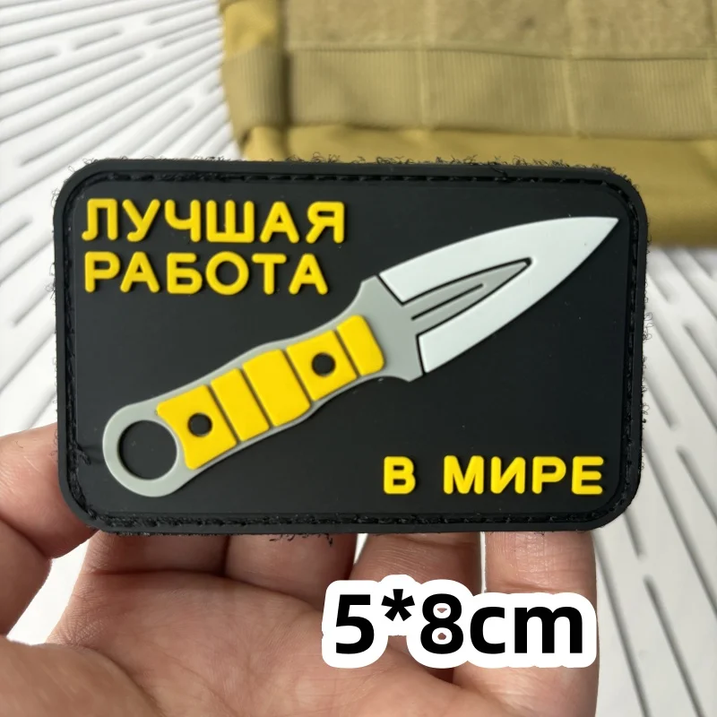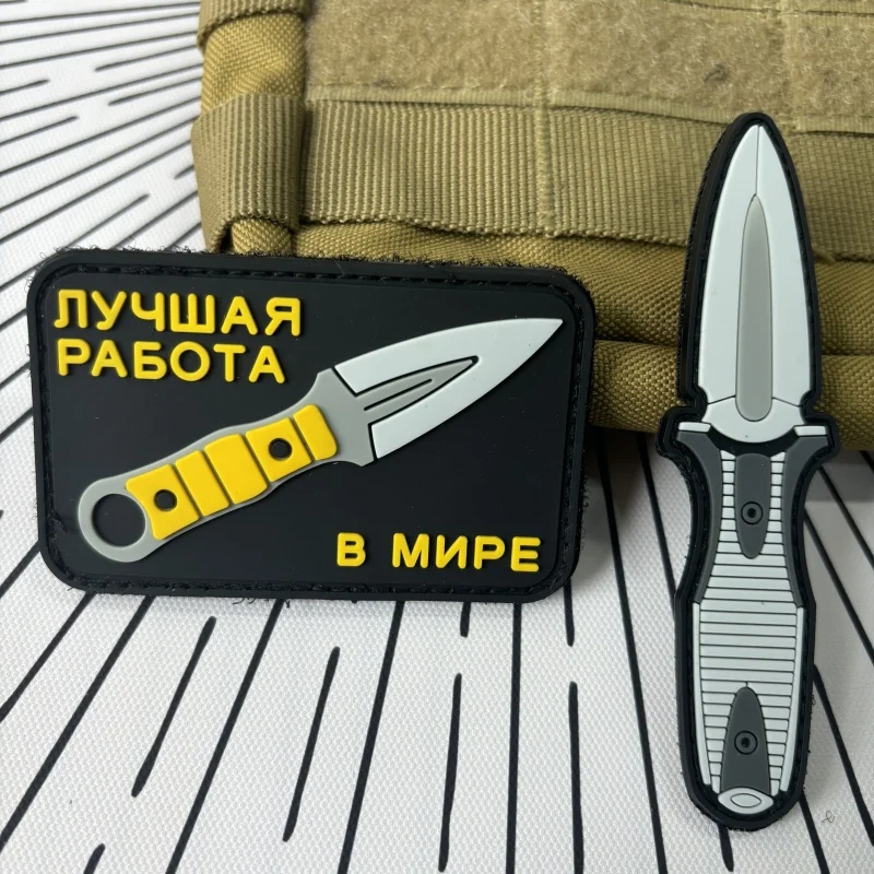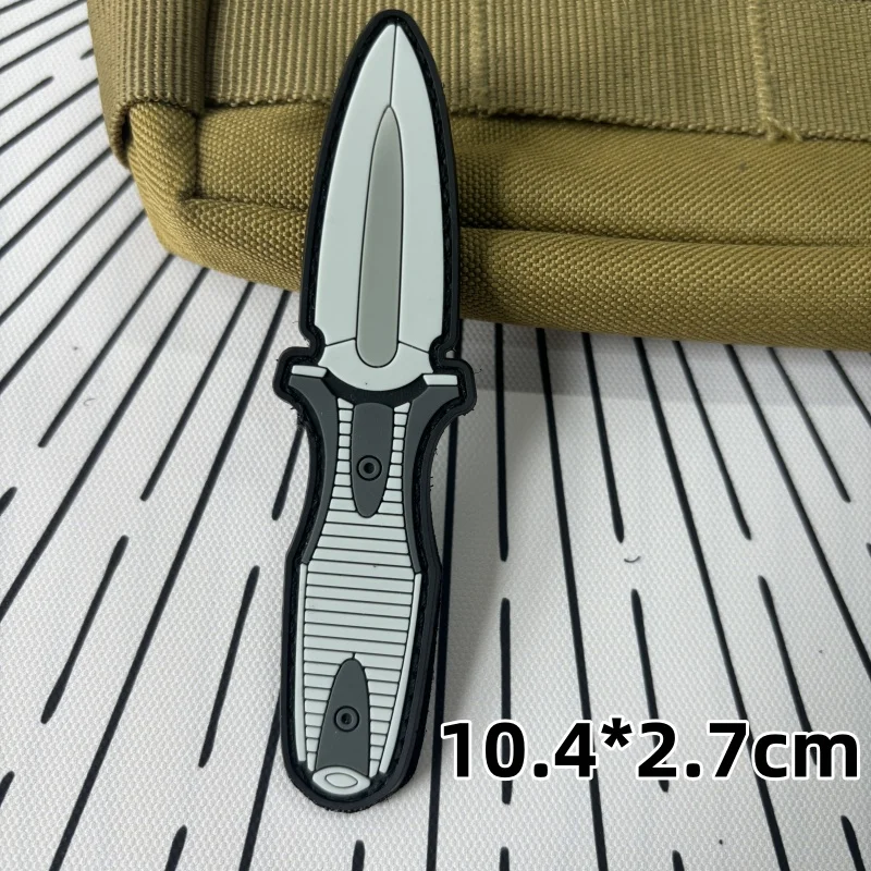 Parches tácticos de moral de cuchillo de bolsillo "Grave", parches de gancho y bucle de PVC, daga militar, arma, insignia de combate, pegatinas para mochila