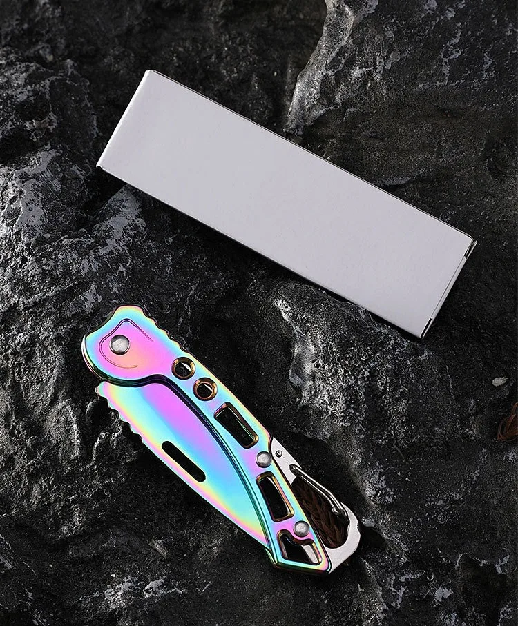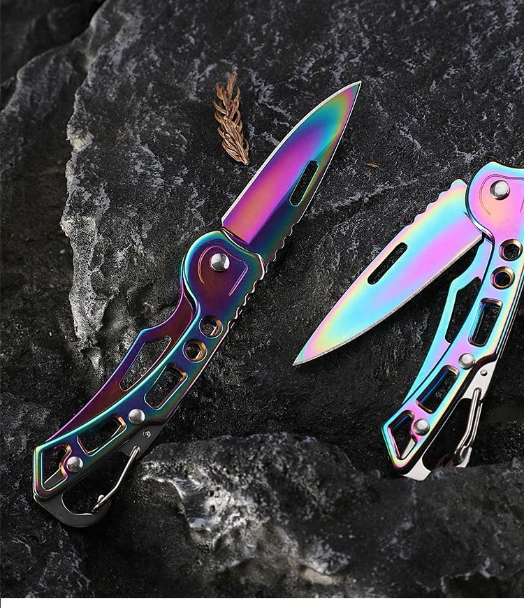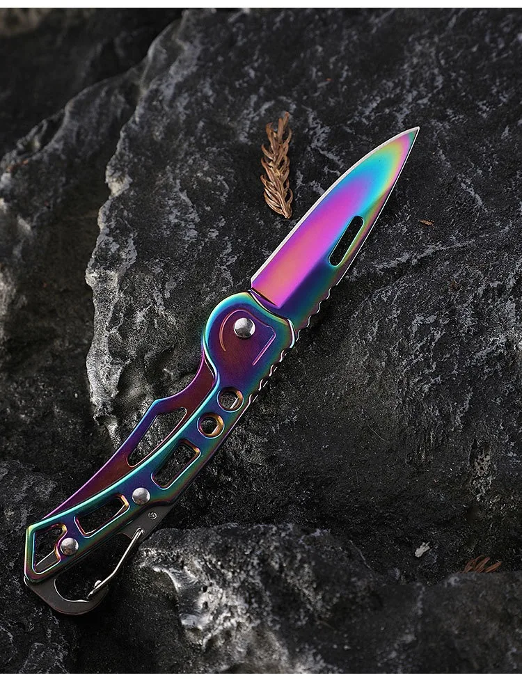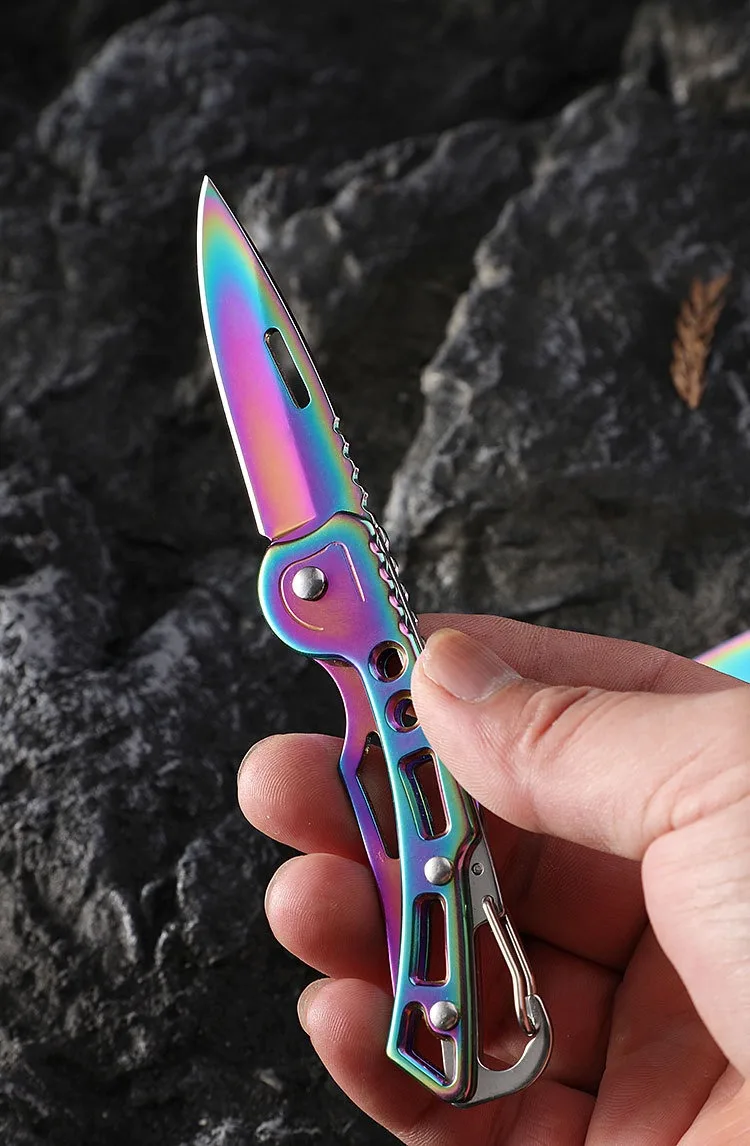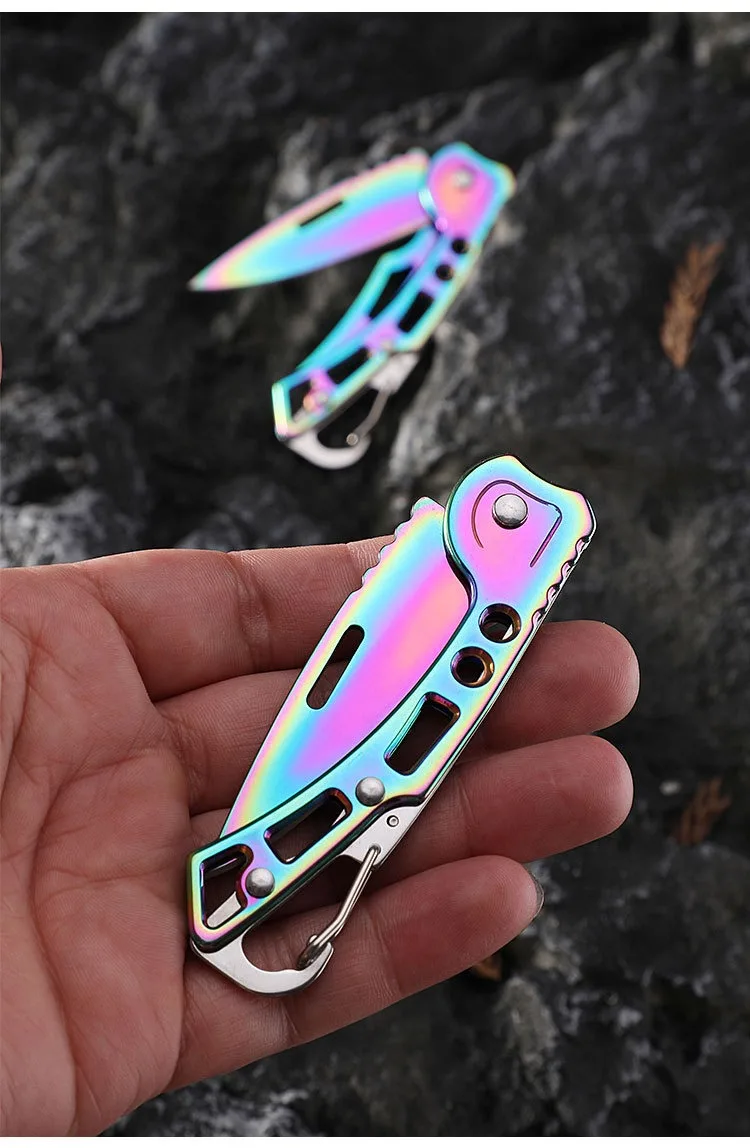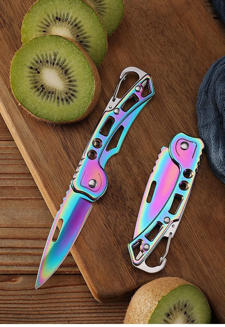 Cuchillo de bolsillo plegable para exteriores, cuchillo de fruta de acero inoxidable EDC, llavero de transporte, cuchillo plegable, cuchillo de bolsillo multifunción