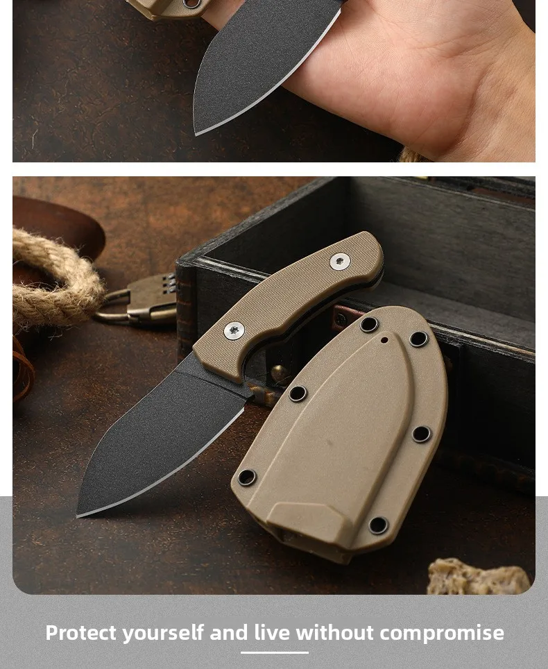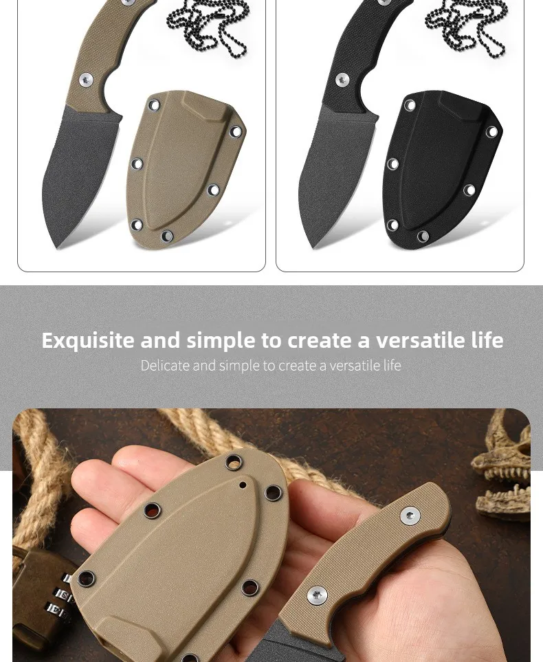 Cuchillo para colgar en el cuello EDC, cuchillo para collar, mini cuchillo recto de bolsillo, cuchillo para exteriores
