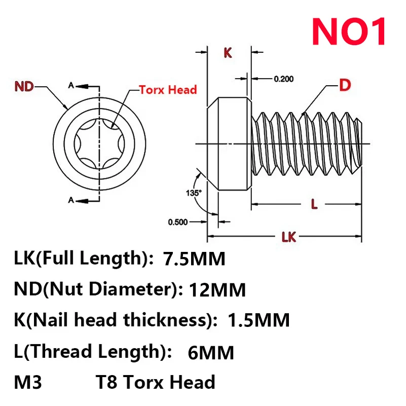Cuchillo hecho de acero inoxidable personalizado, 2 tamaños, tornillos de rosca M3, botón de cabeza Torx T8, remache de husillo de uñas, sujetador, accesorios para hacer bricolaje