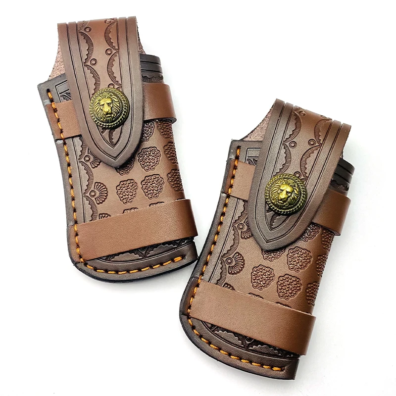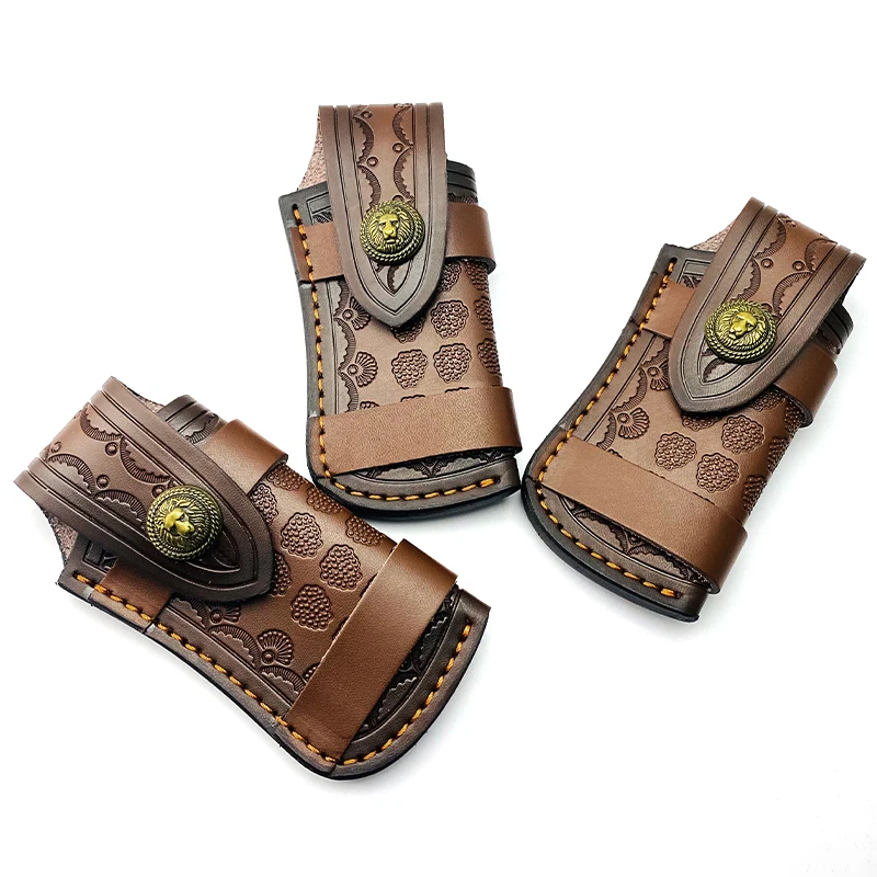 Cuchillo de hoja plegable de cuero de vaca genuino de alta calidad, vaina de vaina, al aire libre con hebilla vaina de cuchillo de caza, 1 pieza