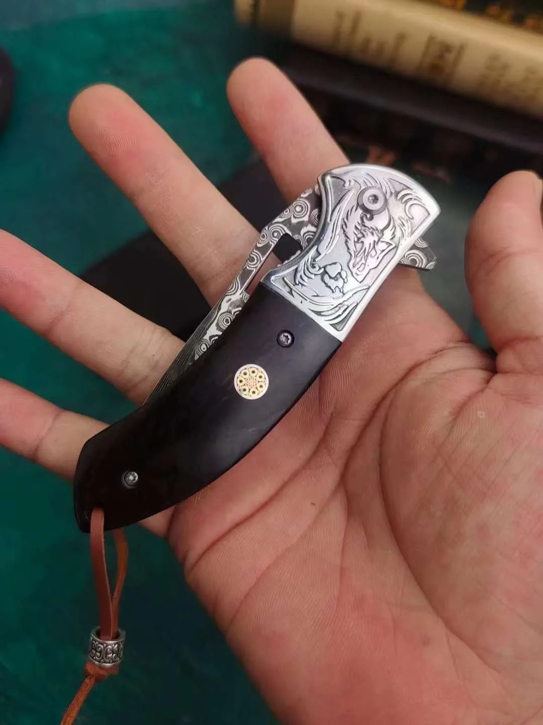 Cuchillo plegable de acero damasco para exteriores, cuchillo de autodefensa, cuchillo de campo, cuchillo de fruta plegable afilado de supervivencia en la naturaleza de alta dureza