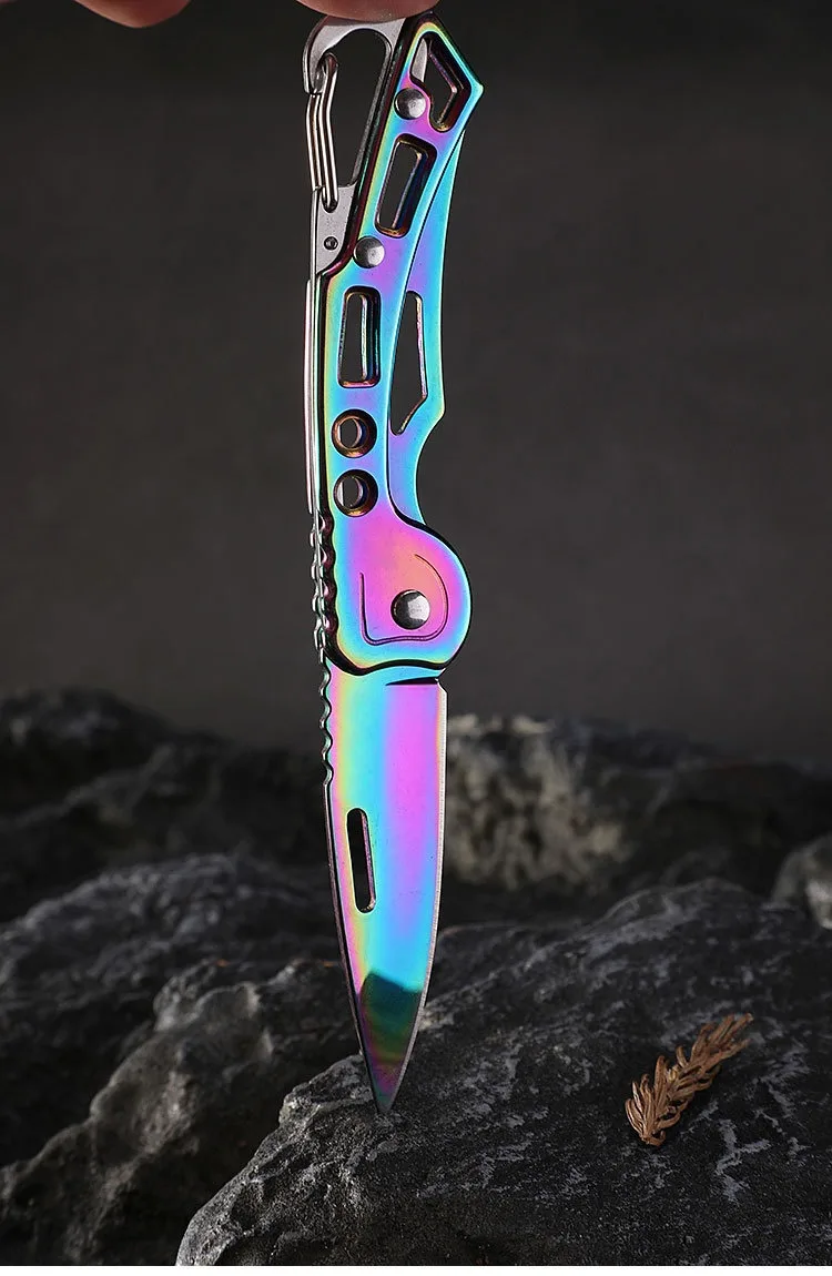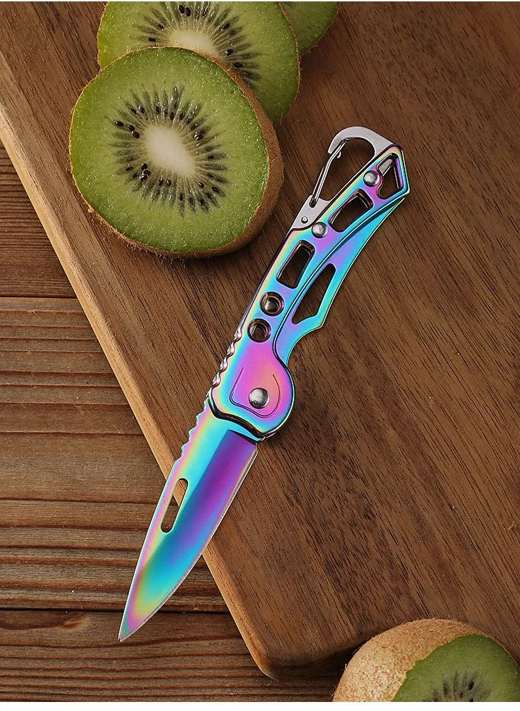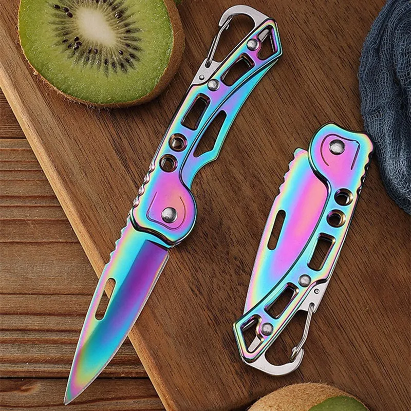 Cuchillo plegable de acero inoxidable para acampar al aire libre, cuchillo de transporte para acampar, cuchillo plegable portátil para fruta
