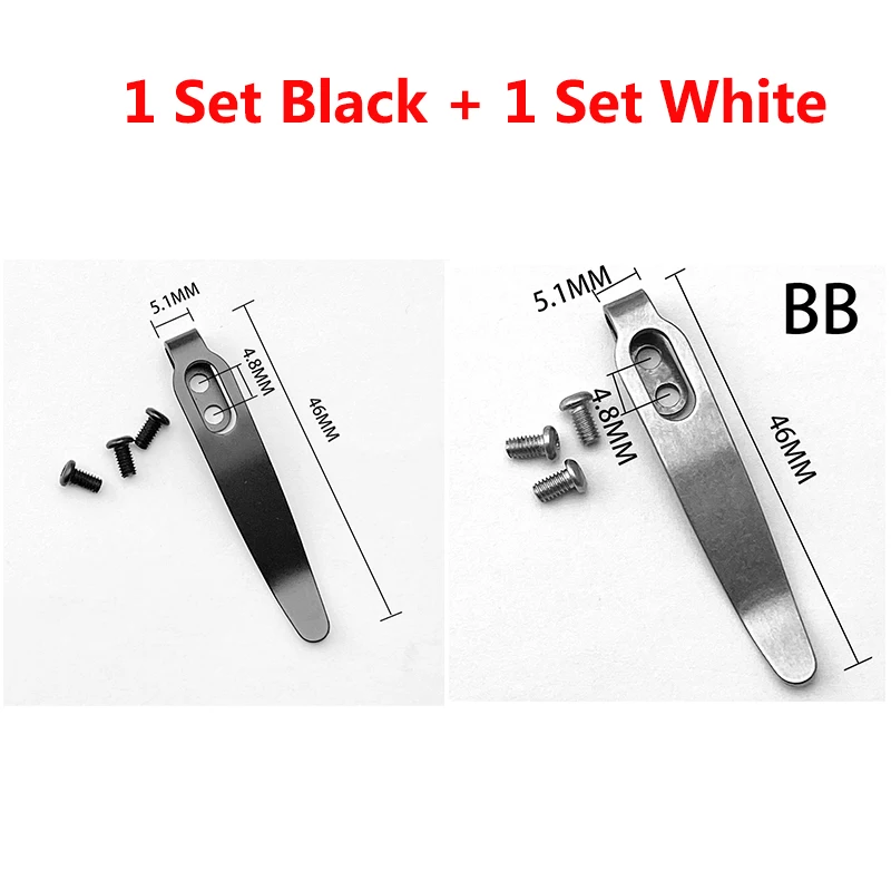 Este clip trasero no es adecuado para ningún modelo de herramienta, porque la distancia del orificio del clip trasero no está hecha para un modelo de herramienta. Es adecuado para el cuchillo plegable de bricolaje personal. Úselo de acuerdo con el tamaño de su cuchillo.