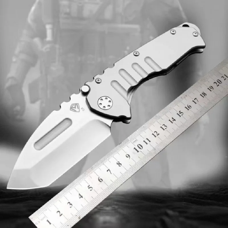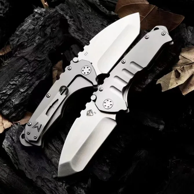 Cuchillo plegable de alta dureza para exteriores, navaja de bolsillo plegable de acero D2, ideal para acampar, defensa, fruta