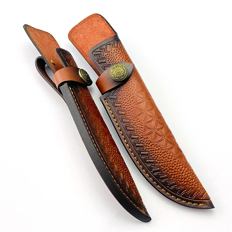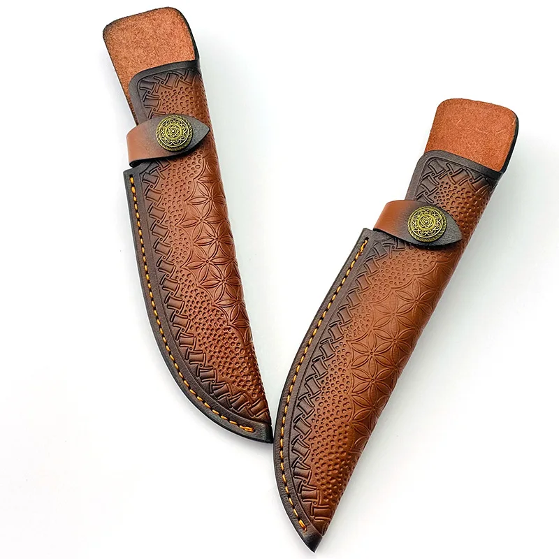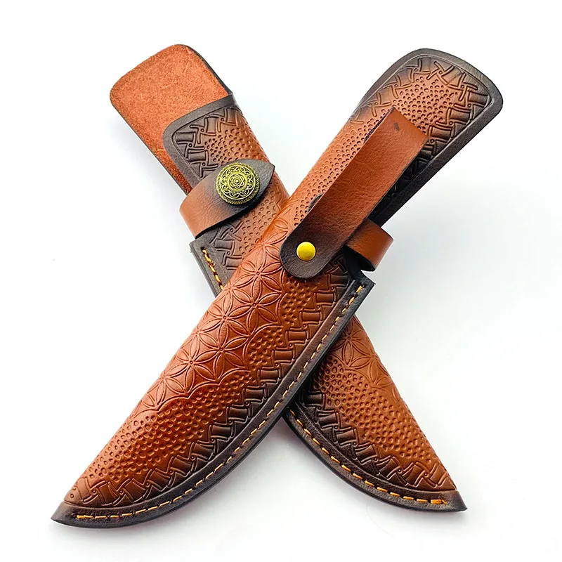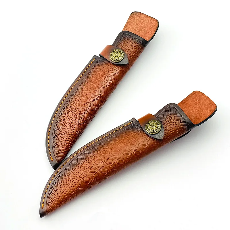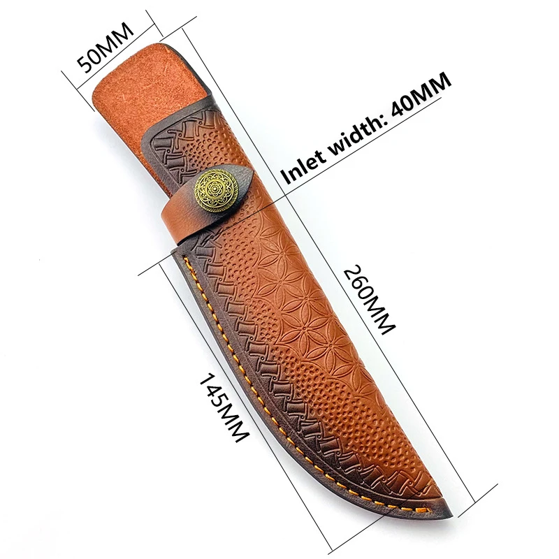 1 funda de vaina de hoja fija para cuchillo recto pequeño de piel de vaca genuina