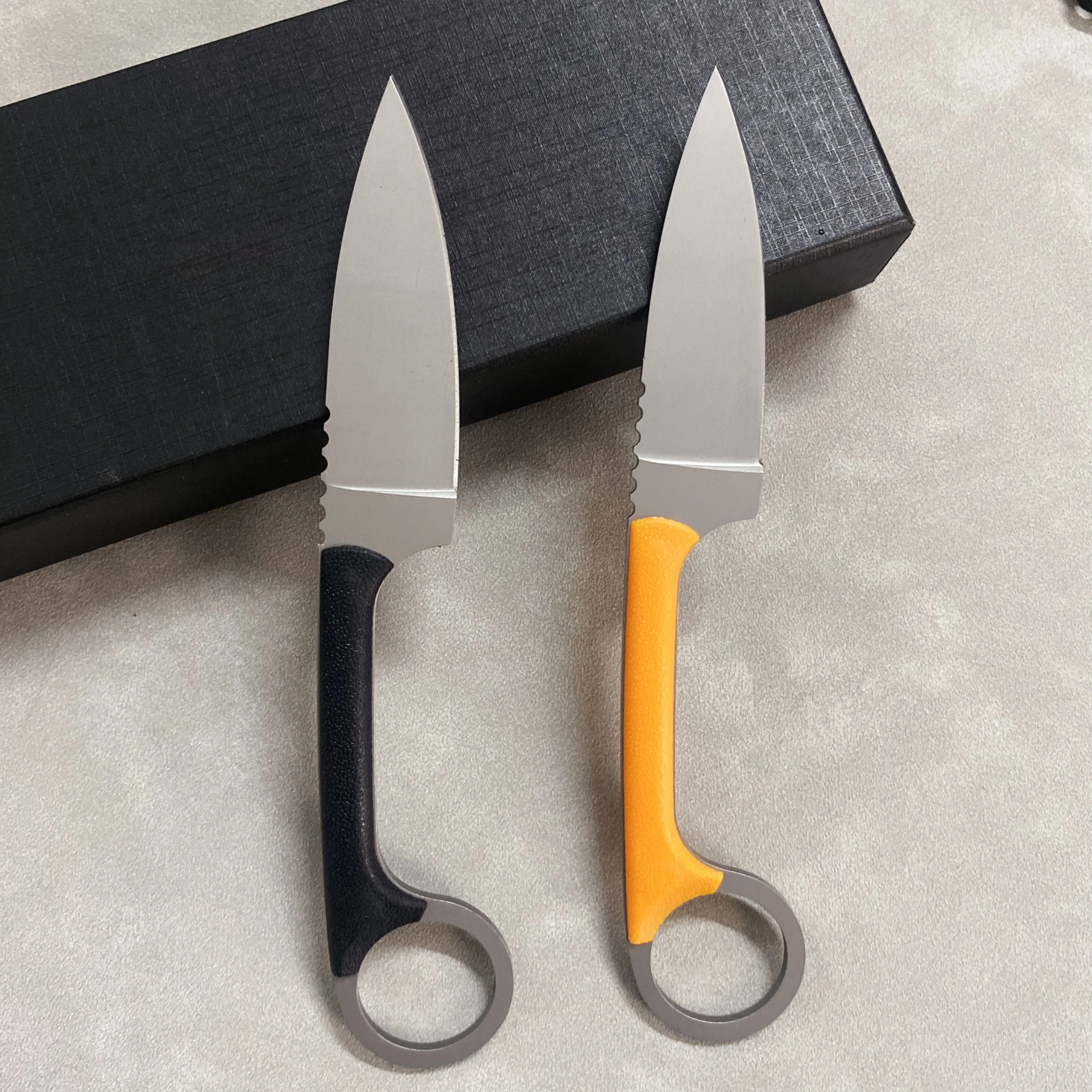 Cuchillo recto pequeño multifuncional para supervivencia al aire libre, cuchillo portátil para cortar cuerda, cuchillo salvaje de quilla todo en uno