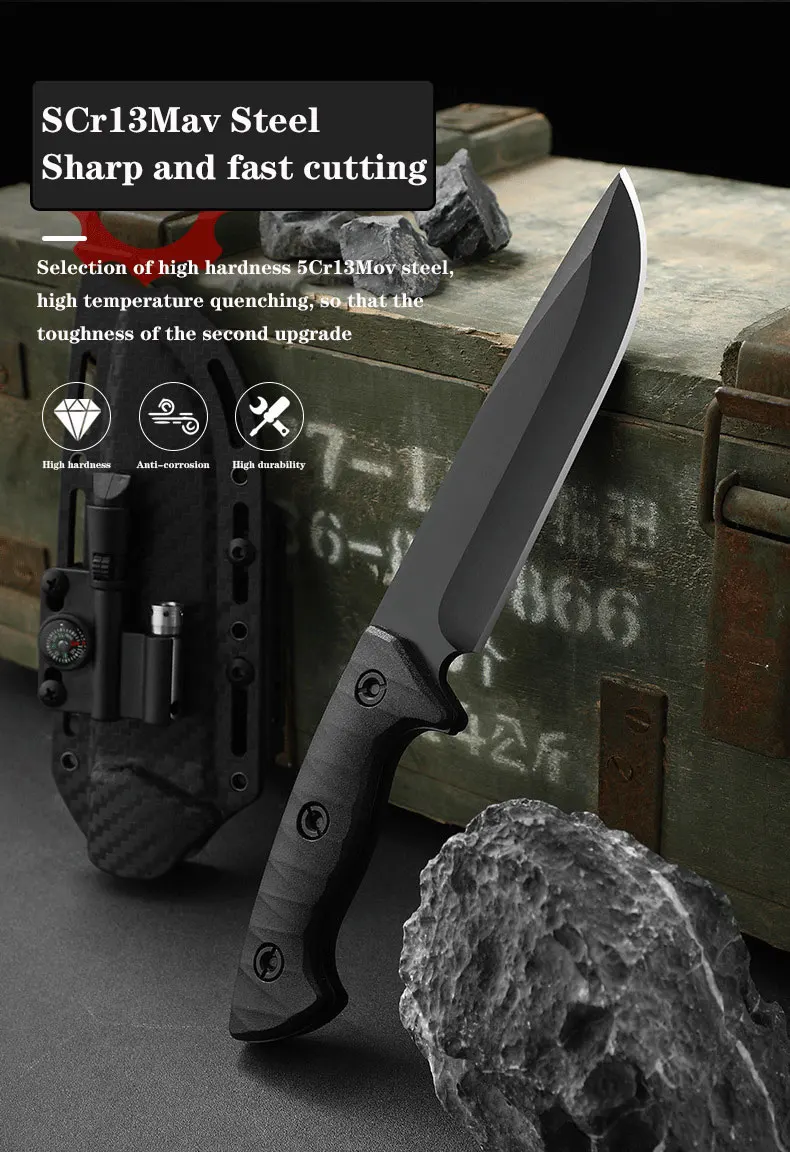 Cuchillo recto táctico K para exteriores, navaja de supervivencia para acampar, expedición de supervivencia, defensa, transporte