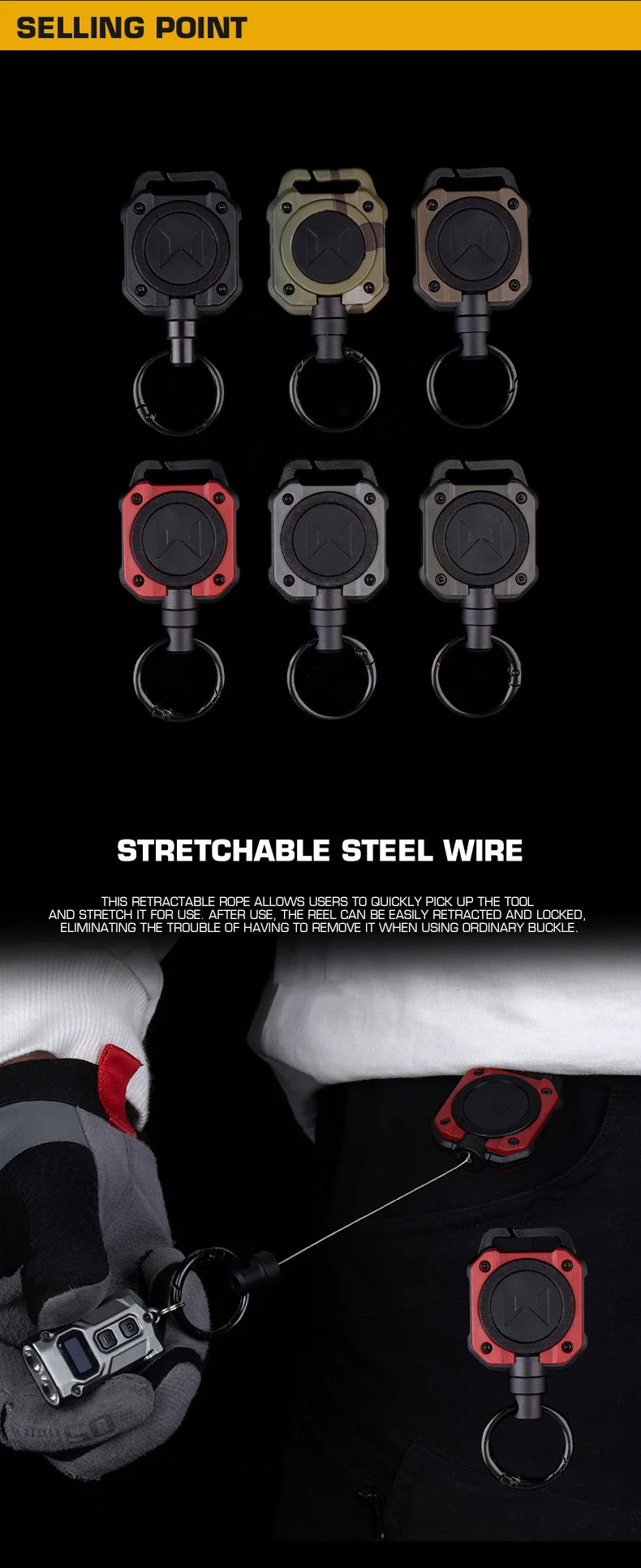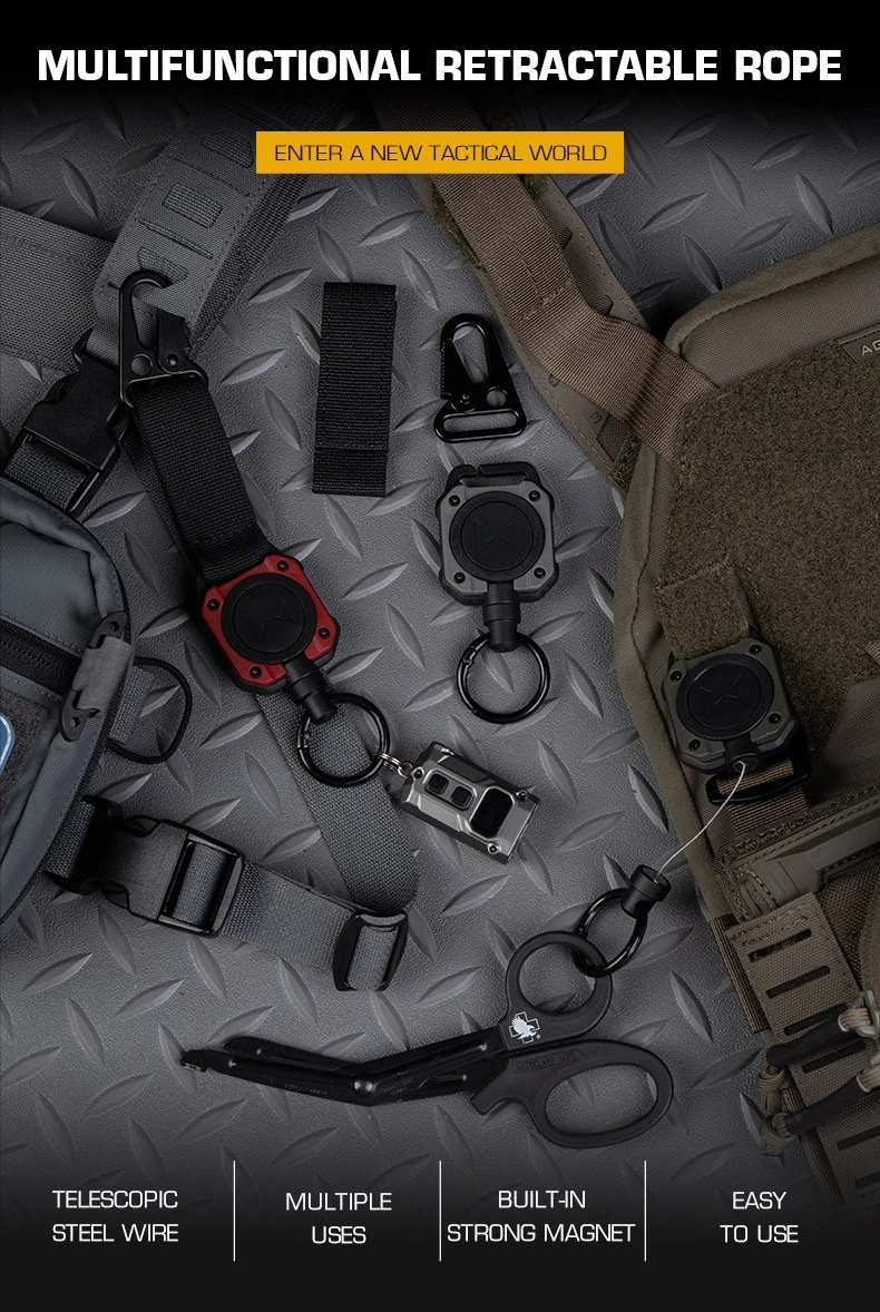 NOMBRE DEL PRODUCTO: CUERDA RETRÁCTIL MULTIFUNCIONAL COLOR DEL PRODUCTO: VERDE/NERO/TAN/GRIS/ROJO/MC MATERIAL DEL PRODUCTO: NYLON ESCENA APLICABLE: ACTIVIDADES AL AIRE LIBRE, JUEGOS TÁCTICOS NOTA: PUEDEN haber ERRORES LISCOS EN LA MEDICIÓN MANUAL, POR FAVOR, REFEREN EL PRODUCTO REAL.