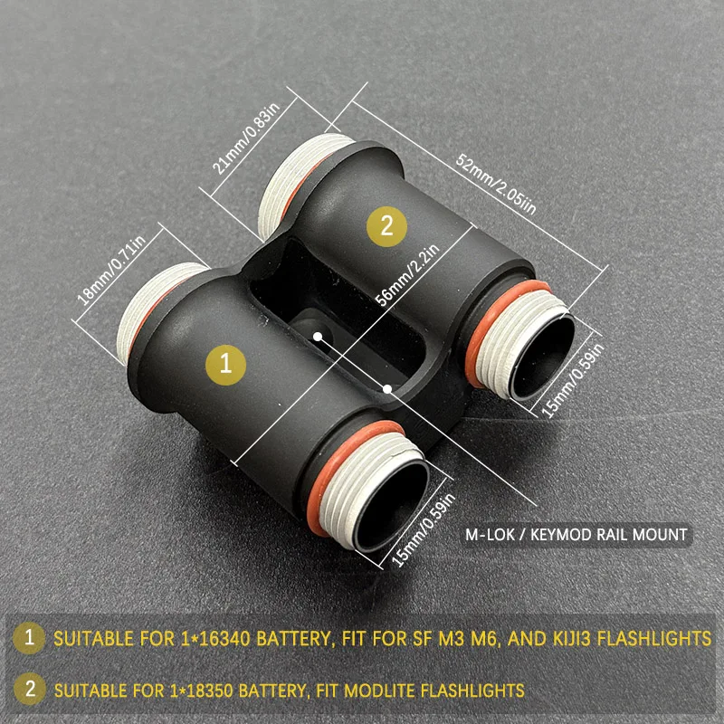 Nota: Un cuerpo principal usa una batería 16340 y el otro usa una batería 18350.