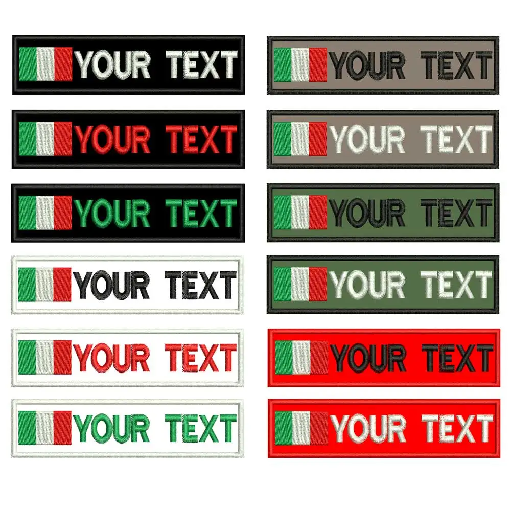 Custom Italy Flag Name Tags Military Patch Embroidered Iron on Backing Hook Backing
