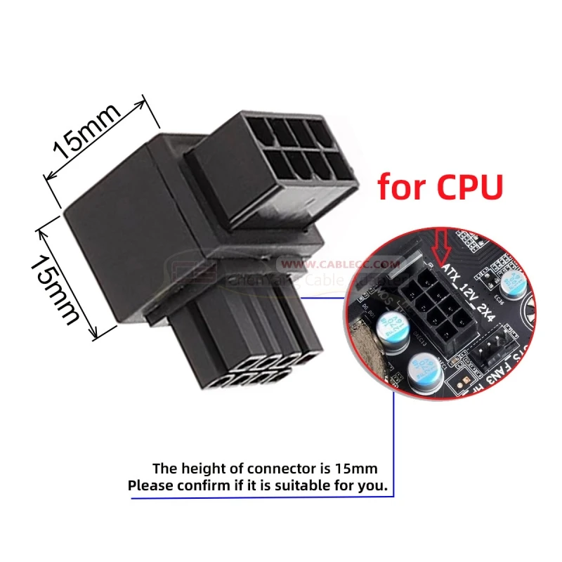 Puede instalar el cable de alimentación de dirección vertical a horizontal con este adaptador. Lo que resolverá la instalación de la CPU para el chasis de altura limitada.