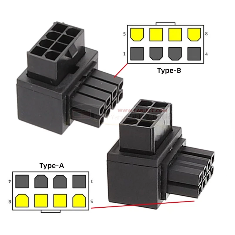 2 unids/lote ATX 8P macho a hembra 90 grados arriba abajo adaptador de cabecera de potencia en ángulo para tarjeta gráfica GPU