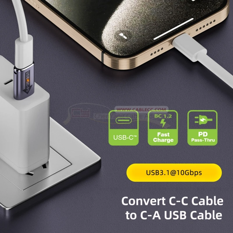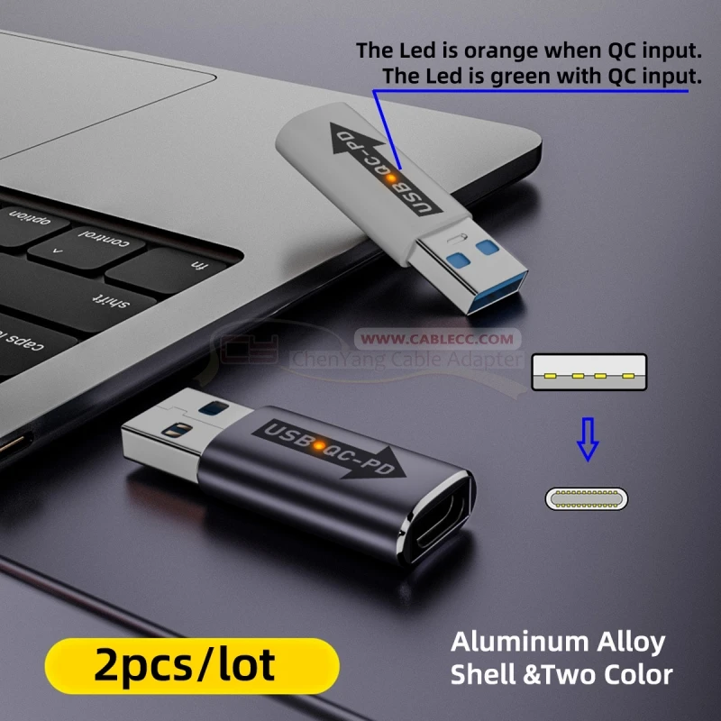 2 unids/lote USB 2,0 A macho QC a PD tipo C hembra 5Gbps adaptador de corriente de datos para ordenador portátil tableta teléfono