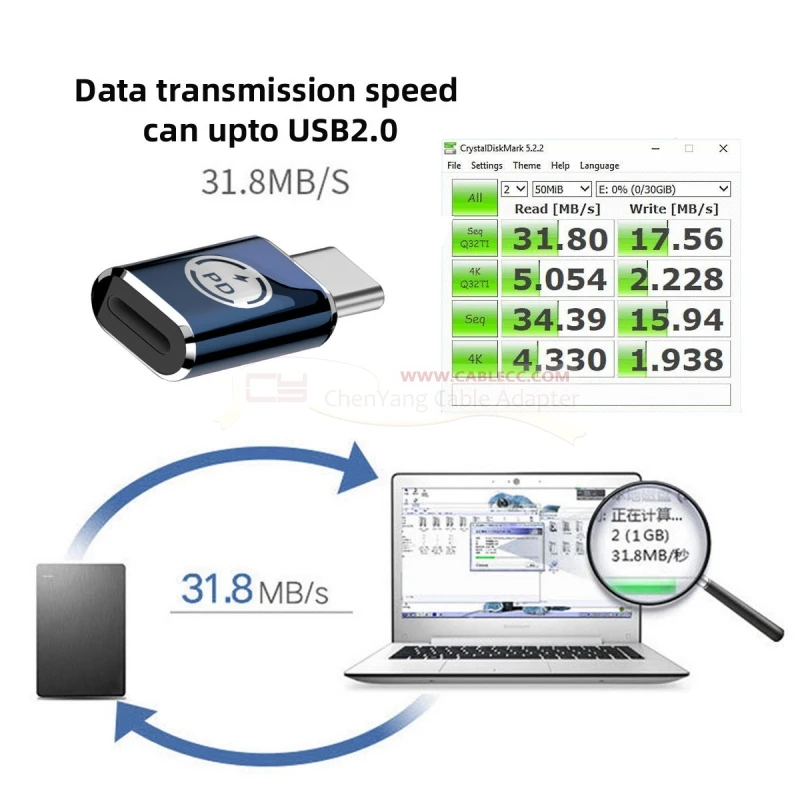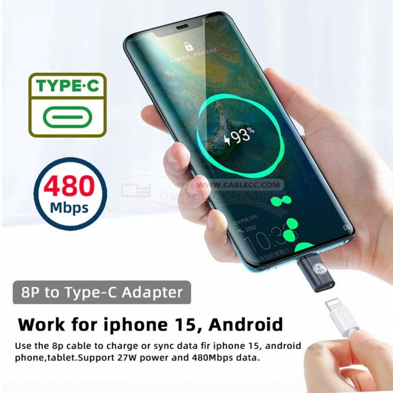Adaptador de corriente CY tipo C macho a 8P hembra 27W Compatible con iPhone 15 & Andtoid & Tablet 480Mbps Data