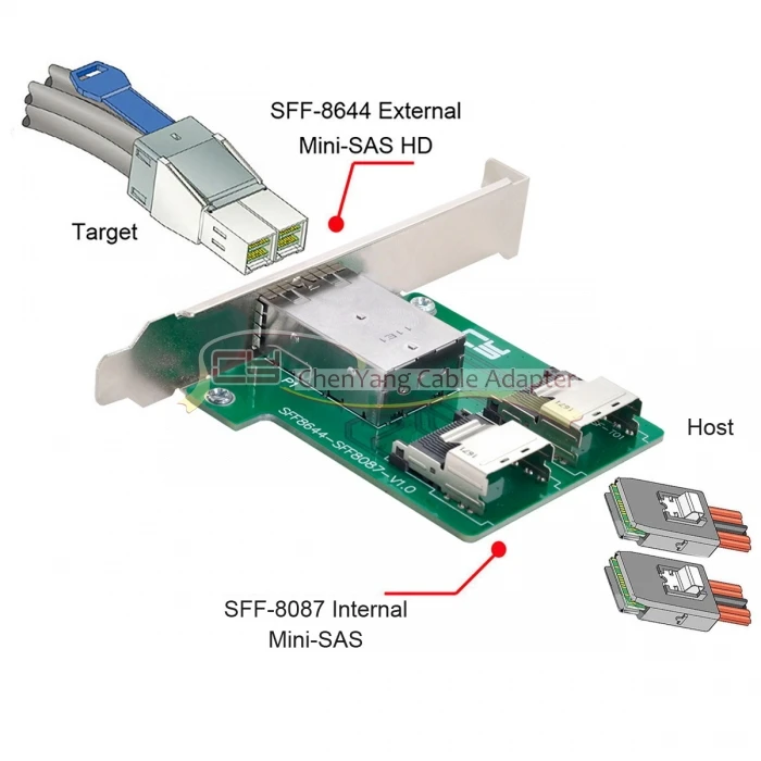 Puertos duales Mini SAS HD a Mini SAS interno Adaptador hembra de PCBA con el soporte del perfil bajo
