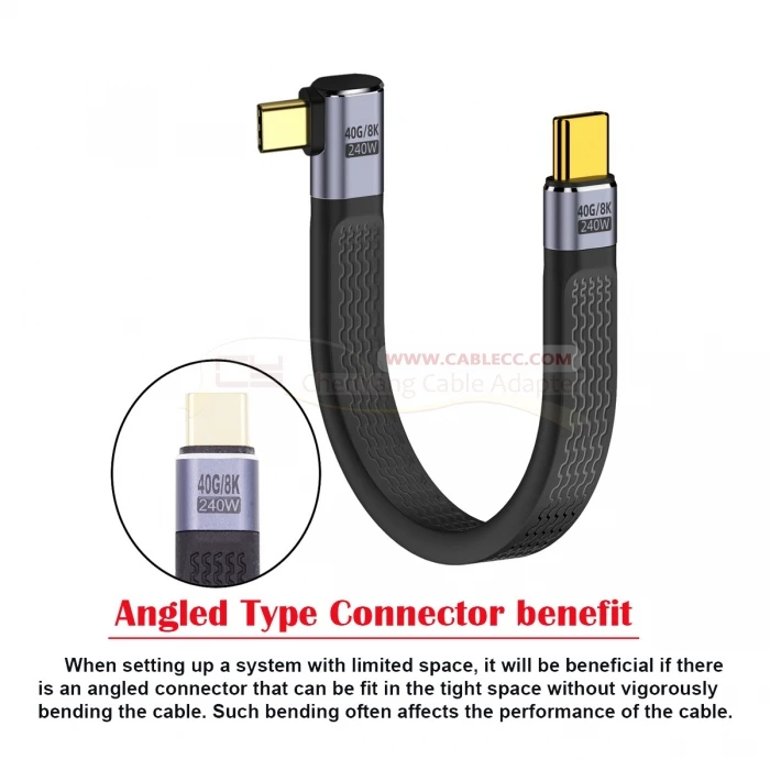 Perfil bajo/ángulo recto 240W Tipo-C USB-C macho a macho USB4 40Gbps 100W 8K Cable DE DATOS FPC plano y delgado para teléfono portátil 13cm