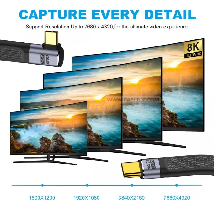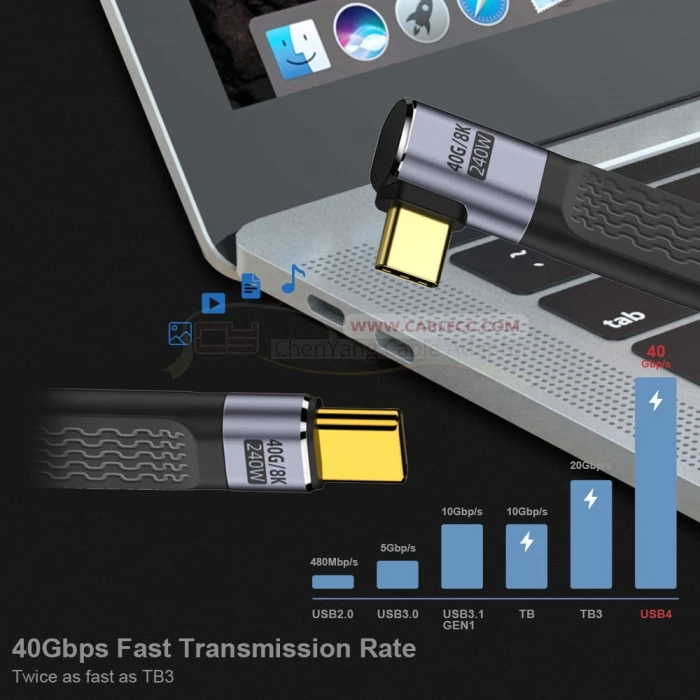 Cable DE DATOS FPC plano en ángulo CY USB4 de tipo C macho a macho compatible con 8K 240W 40Gbps para teléfono portátil 13cm