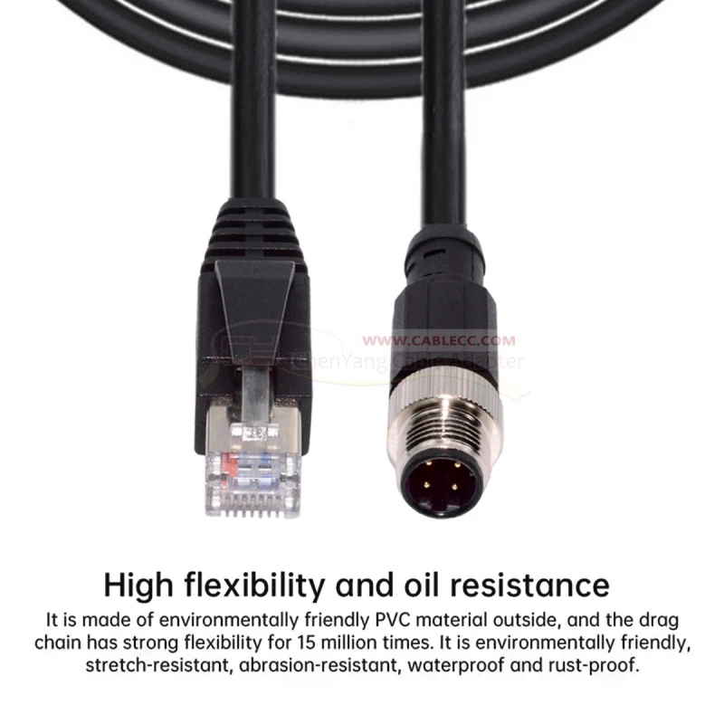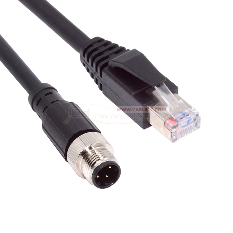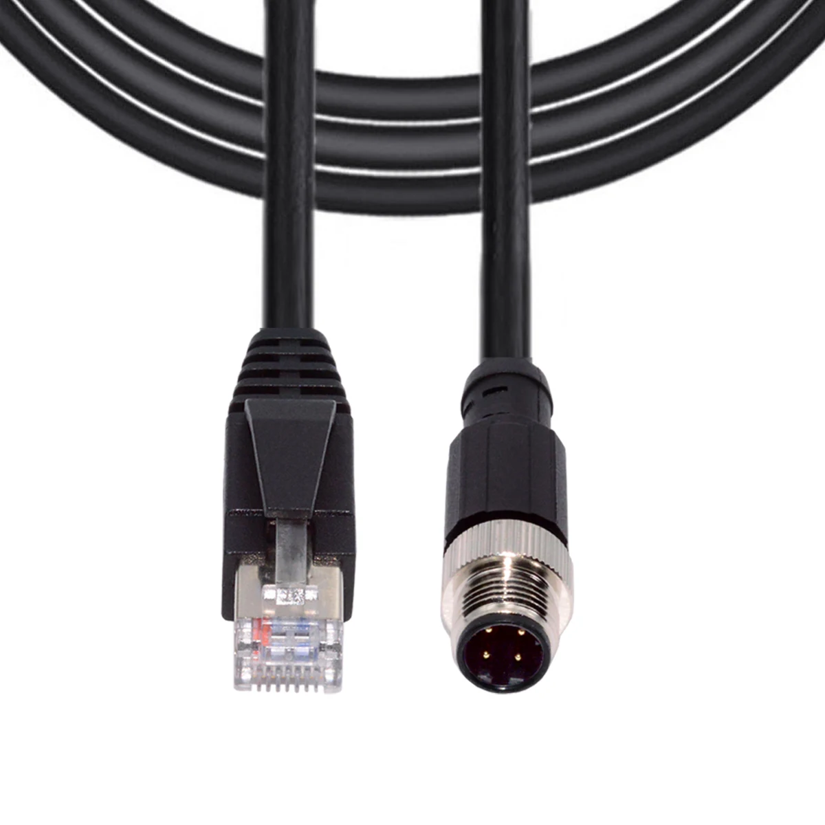 Cable M12 Tipo-D codificado en D de 4 pines macho a RJ45 Cat5e macho, red Lan Ethernet, aplicaciones industriales, cable de conexión IP67