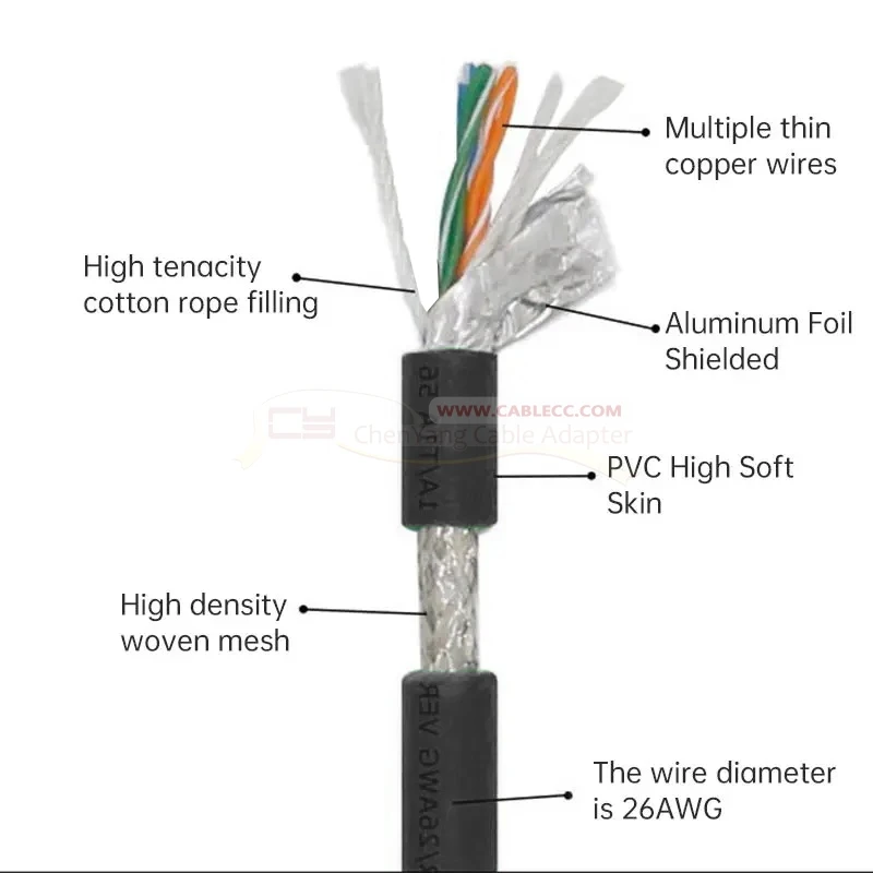 El cable 26AWG de alta flexibilidad con cubierta de PVC proporciona una mejor protección, las velocidades son más estables.