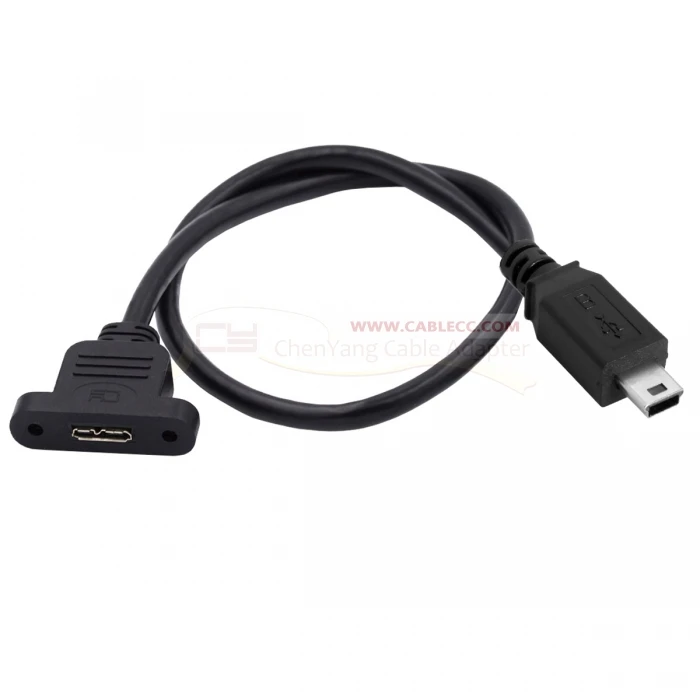 Mini USB 2,0 5Pin Macho a Micro 3,0 Tipo-B Hembra Tipo de montaje en Tornillo Cable de extensión 480Mbps