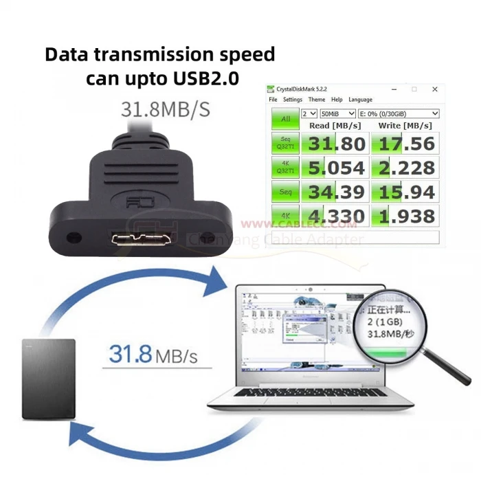 CY USB 3,0 hembra tipo B a USB 2,0 5 pines macho Cable de datos de alimentación tipo de montaje de tornillo para disco duro móvil HDD móvil 480Mbps