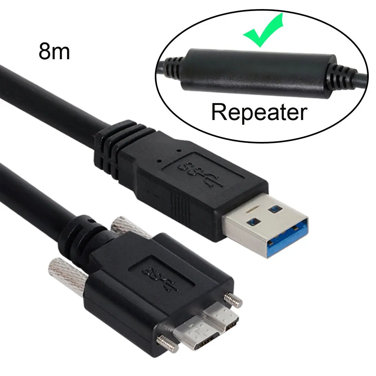 Repetidor de 8m USB 3,0 tipo A macho a Micro USB 3,0 B macho con tornillos de panel de montajeCablePara teléfono móvil con cámara y disco duro