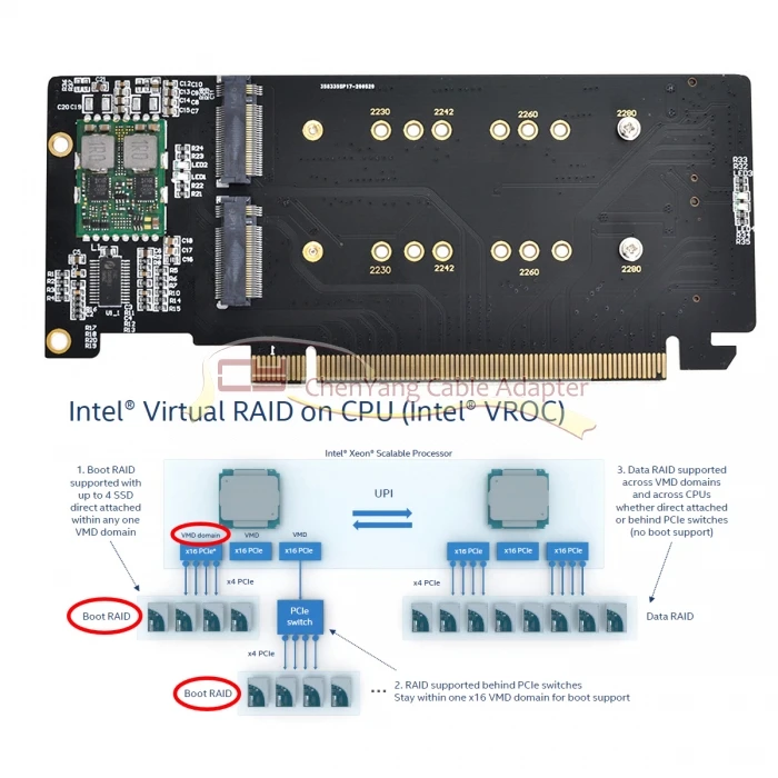 4X NVME M.2 AHCI a PCIE Express 3,0 Gen3 X16 Tarjeta Raid VROC Raid0 Hyper Adapter