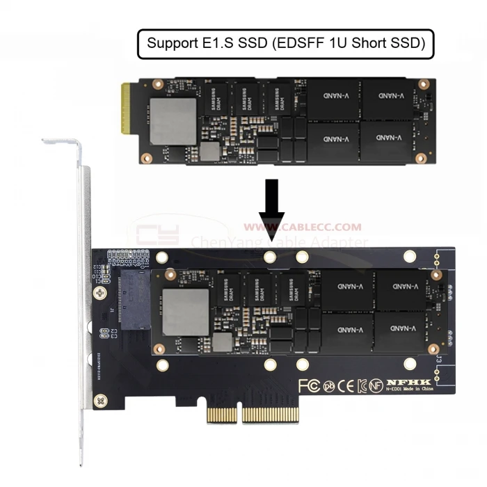 CY NVMe Ruler 1U 2017 EDSFF 5,9mm 8,0mm Espesor Corto SSD E1.S Adaptador de portador a adaptador de host de 4X de PCI-E4.0
